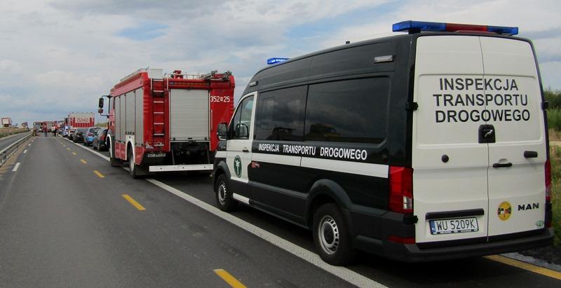 Na miejsce wypadku udali się funkcjonariusze z częstochowskiego oddziału ITD. Inspektorzy pomagali w zabezpieczeniu dowodów. Tachografy cyfrowe w obu kabinach ciężarówek spaliły się całkowicie. Zachował się częściowo tachograf z autobusu (analogowy) z wykresówką drugiego kierowcy. Na wykresówce tej nie stwierdzili żadnych naruszeń z zakresu czasu pracy. Inspektorzy przekazali odczytane dane z wykresówki oraz inne zachowane dokumenty przewozowe policjantom ustalającym okoliczności wypadku. Brali też udział w posiedzeniu sztabu kryzysowego, zwołanego przez wojewodę śląskiego.