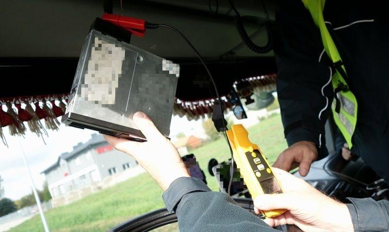 Urządzenie elektroniczne do fałszowania czasu pracy kierowcy znaleziono też w ciężarówce należącej do przewoźnika z Łomży. W pojeździe przewożącym ładunek z Niemiec do Chełmna inspektorzy ujawnili dodatkowy czujnik ruchu, który był ukryty za radiem. Urządzenie sterowane za pomocą pilota umożliwiało kierowcy rejestrowanie odpoczynku w trakcie jazdy. Ciężarówkę skierowano do uprawnionego serwisu tachografów, gdzie wymontowano niedozwolony wyłącznik i zabezpieczono jako dowód w sprawie. W tym przypadku przewoźnik będzie musiał pokryć wszystkie koszty związane z doprowadzeniem tachografu do stanu zgodnego z przepisami. Oprócz tego przedsiębiorcy grozi 10 tys. zł kary w ramach wszczętego postępowania administracyjnego przez ITD.