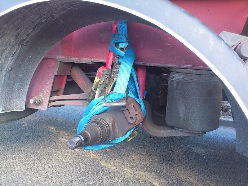 Przedmiotowym zespołem pojazdów wykonywano przewóz 24 ton sody. W trakcie kontroli stwierdzono, że po lewej stronie na pierwszej osi składowej potrójnej osi nienapędowej naczepy ciężarowej brakowało koła ponieważ uszkodzeniu uległo łożysko. Kierowca oświadczył, iż świadomie wykonywał przewóz drogowy na trasie Inowrocław - Piła pojazdem członowym nie spełniającym wymaganych warunków technicznych, za co został ukarany mandatem karnym kredytowanym w kwocie 500 zł. Zatrzymano również dowód rejestracyjny kontrolowanej naczepy ciężarowej. Kierowcy wydano zakaz poruszania się po drodze publicznej do czasu ustania przyczyny unieruchomienia pojazdu.