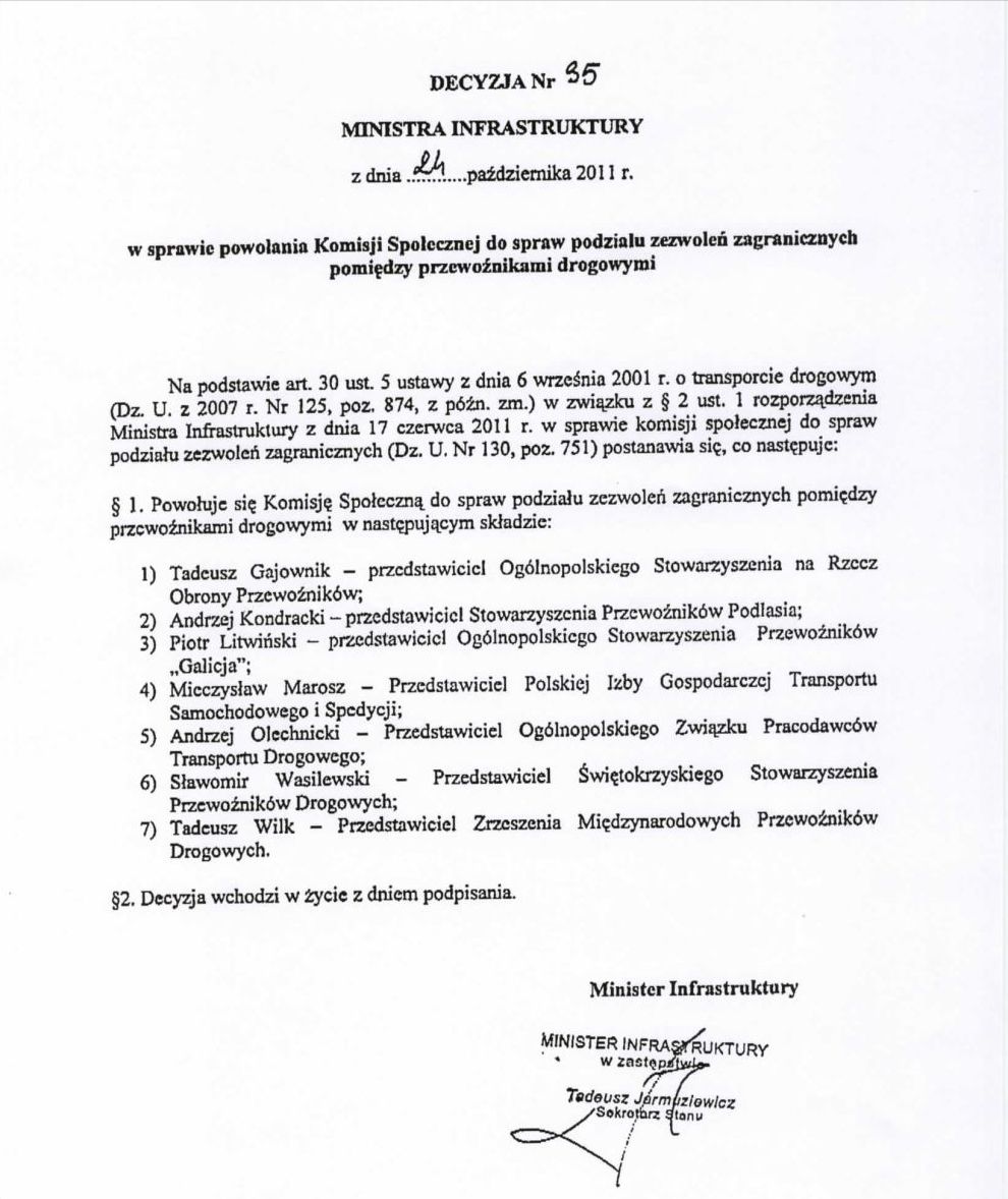 Protokoły z posiedzeń Komisji Społecznej ds. podziału zezwoleń :