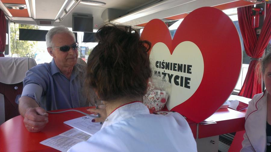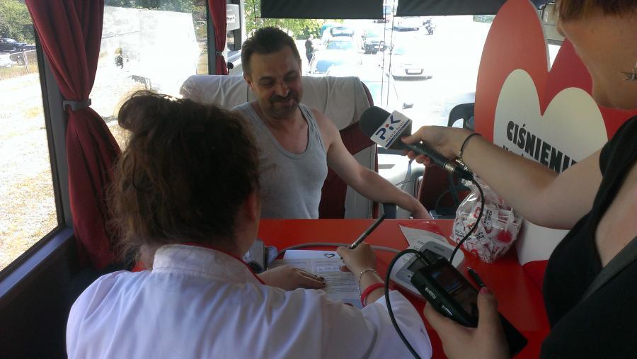 Pomiary ciśnienia krwi kierowców wykonywał personel medyczny.