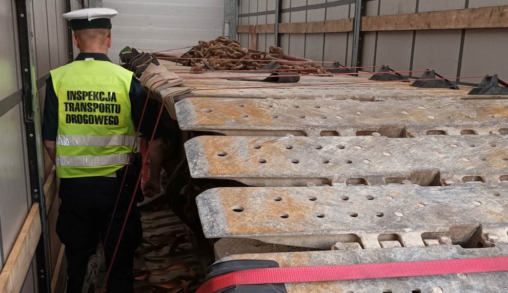 W piątek (3 czerwca), na krajowej „ósemce” koło dawnego przejścia granicznego w Budzisku, patrol podlaskiej ITD zatrzymał do kontroli ciężarówkę należącą do litewskiej firmy. Zestawem przewożono dużą gąsienicę do maszyny budowlanej z Niemiec do Estonii. Kierowca, 40 minut przed zatrzymaniem do kontroli drogowej, zalogował w tachografie kartę należącą do osoby zarządzającej transportem w przedsiębiorstwie. Chciał w ten sposób kontynuować transport i ukryć naruszenia dopuszczalnych norm czasu pracy. Inspektorzy stwierdzili, że dopuścił się przekroczenia maksymalnego czasu jazdy dziennej i prowadzenia pojazdu bez wymaganej przerwy. Oprócz tego nie zgadzał się tonaż zestawu. Ciężarówka z przewożonym ładunkiem ważyła blisko 42 t zamiast dopuszczalnych 40 t. Inspektorzy zatrzymali prawo jazdy kierowcy na trzy miesiące i drugą kartę do tachografu, na której zapisywał swoje aktywności niezgodnie z przepisami. Mężczyzna został również ukarany mandatami karnymi na kwotę 5 tys. 750 zł. Za stwierdzone nieprawidłowości konsekwencje czekają też przewoźnika. Wobec niego wszczęto postępowania administracyjne, zagrożone karami w wysokości 9 tys. 650 zł. Zestaw został skierowany na wyznaczony parking strzeżony. Zostanie zwolniony z niego po okazaniu przez przewoźnika wymaganego zezwolenia na przejazd pojazdu nienormatywnego.