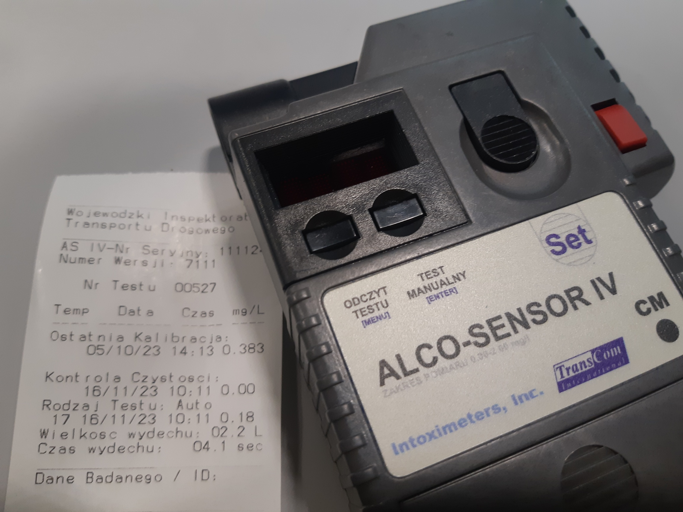 W trakcie pobierania wymaganych dokumentów, inspektorzy poczuli woń alkoholu od kierującego ciężarówką. Badanie trzeźwości wykazało 0,18 mg/l (prawie 0,4 promila) alkoholu w powietrzu wydychanym przez mężczyznę. Kierowanie pojazdem w stanie wskazującym na spożycie alkoholu stanowi wykroczenie i jest zagrożone zatrzymaniem prawa jazdy na okres minimum 6 miesięcy oraz karą grzywny. Kierowca został przekazany do dalszych czynności funkcjonariuszom miejscowej jednostki Policji.