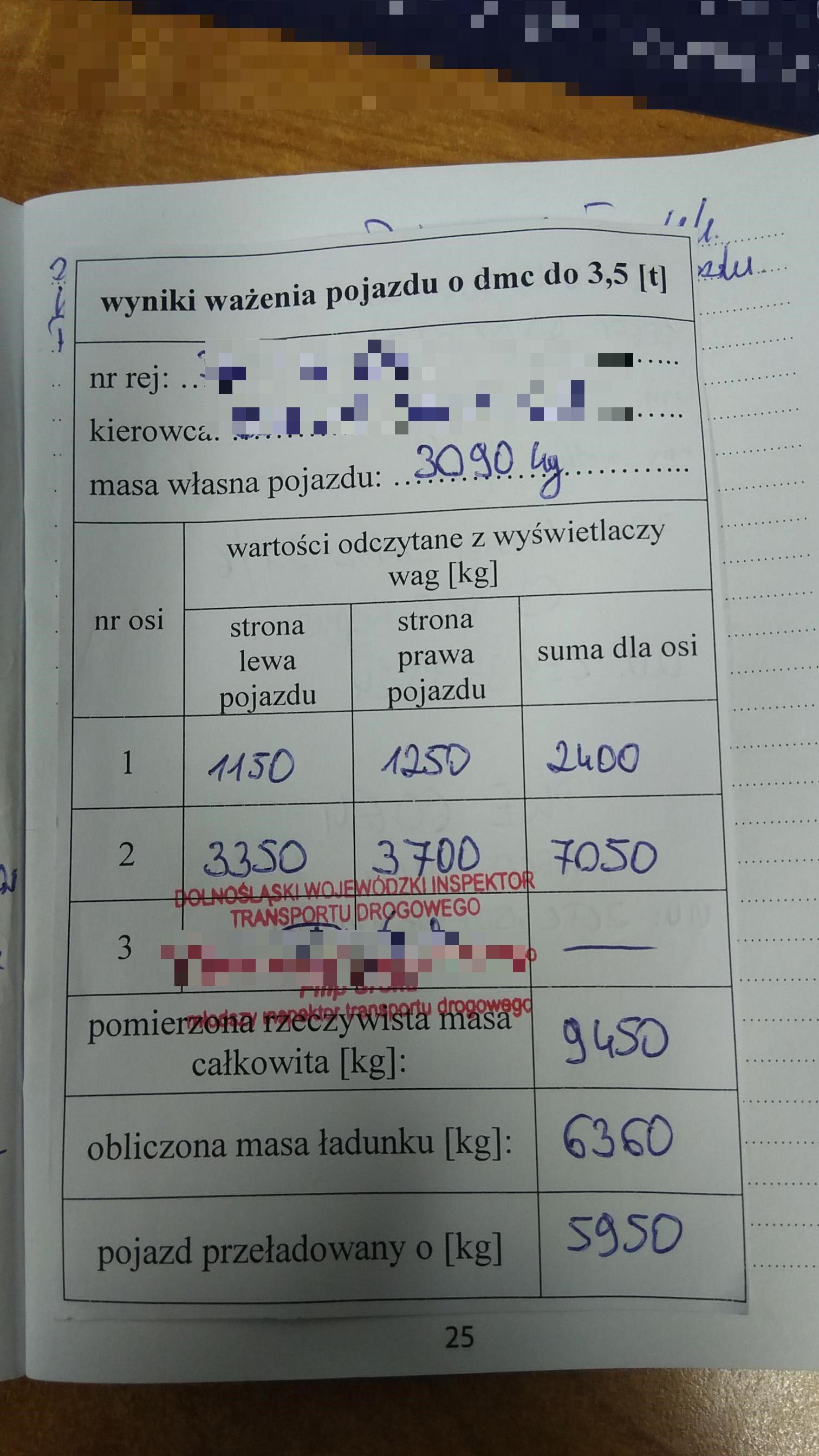 Fatalnie wypadła także kontrola masy. Pojazd ważył prawie 9500 kg, podczas gdy jego dopuszczalna masa całkowita wynosi 3500 kg. Normy ładowności zostały naruszone z kolei aż o 1500%.