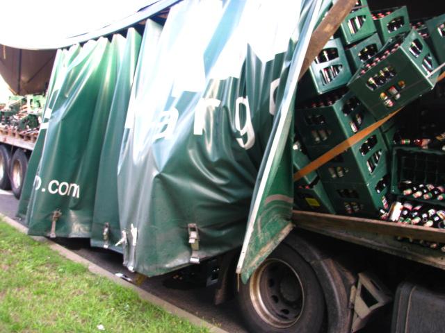 W dniu 8 lipca ok. godz. 16:30 w Poznaniu na Rondzie Obornickim pojazd członowy składający się z ciągnika i naczepy, należący do polskiego przewoźnika, ?zgubił? ładunek piwa w butelkach. Przyczyną zdarzenia było nieprawidłowe zabezpieczenie przewożonego ładunku, którego łączna masa wynosiła blisko 23 000 kg. Kierowca przyznał, iż zabezpieczył za pomocą pasów jedynie ładunek umieszczony na przodzie naczepy, w wyniku czego, na zjeździe z ronda (w kierunku Pniew) skrzynki z piwem przemieściły się i wypadły z pojazdu.