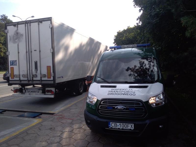 Kontrola została przeprowadzona na drodze krajowej nr 62. Inspektorzy z WITD w Bydgoszczy zatrzymali ciężarówkę należącą do przewoźnika z województwa mazowieckiego. Po analizie danych zawartych w pamięci tachografu cyfrowego inspektorzy stwierdzili, że kierowca prowadzi pojazd bez zalogowanej własnej karty kierowcy, a tachograf ustawiony jest w trybie "OUT". Mężczyzna wielokrotnie przed kontrolą drogową prowadził pojazd bez zalogowanej w tachografie karty kierowcy, w sposób rażący przekraczając dopuszczalne normy prowadzenia pojazdów oraz skracając wymagane przerwy w prowadzeniu i odpoczynki.