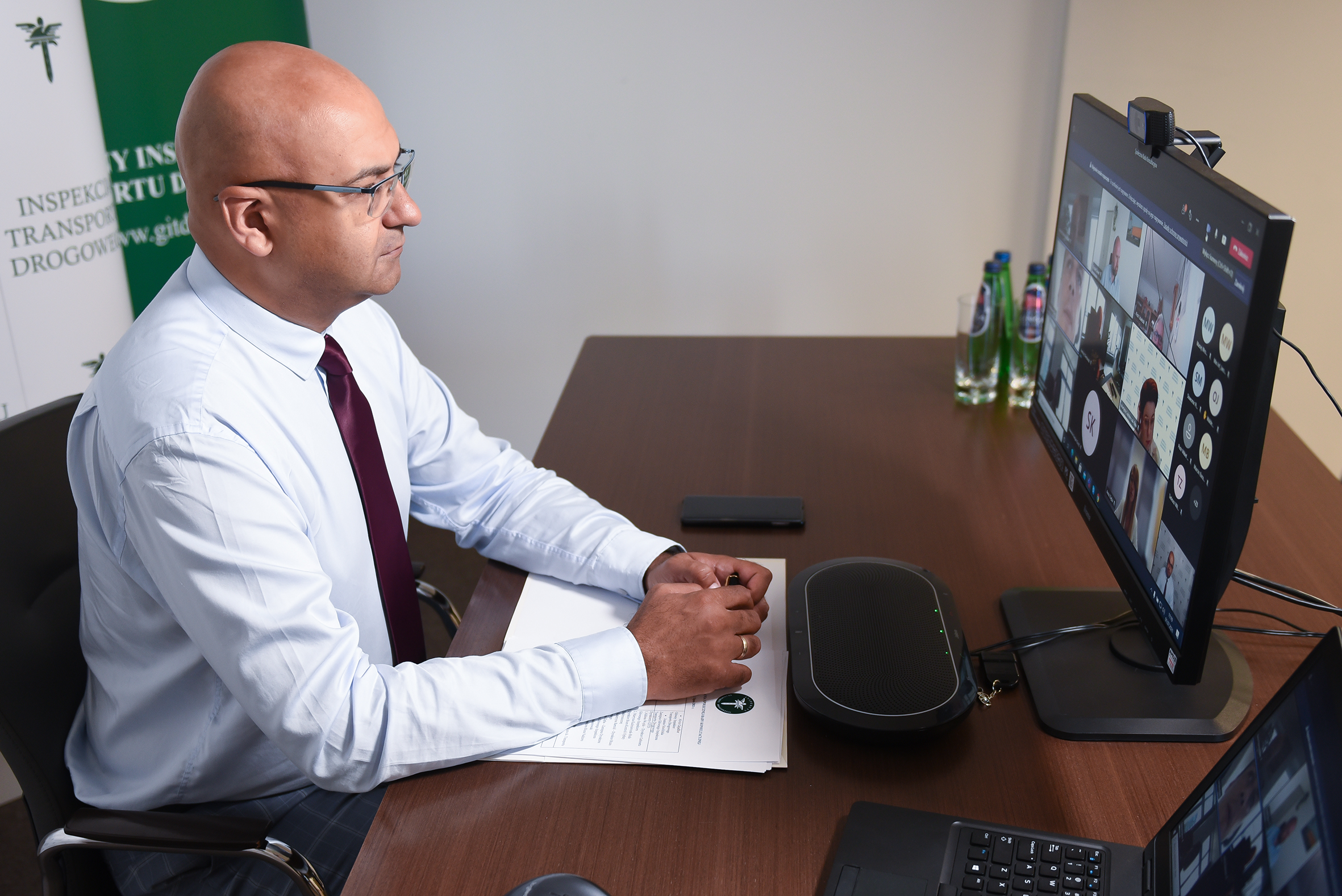 Główny Inspektor Transportu Drogowego – Alvin Gajadhur, rozpoczął spotkanie od przedstawienia danych dotyczących kontroli podmiotów zagranicznych i krajowych. Zawsze podkreślaliśmy, że zwiększamy liczbę kontroli przewoźników zagranicznych. Dążymy do uzyskania 50 % udziału przewoźników zagranicznych w kontrolach drogowych. Na koniec maja br. nawet nieznacznie przekroczyliśmy ten próg. W ten sposób chronimy polski rynek transportowy – powiedział Szef Inspekcji.