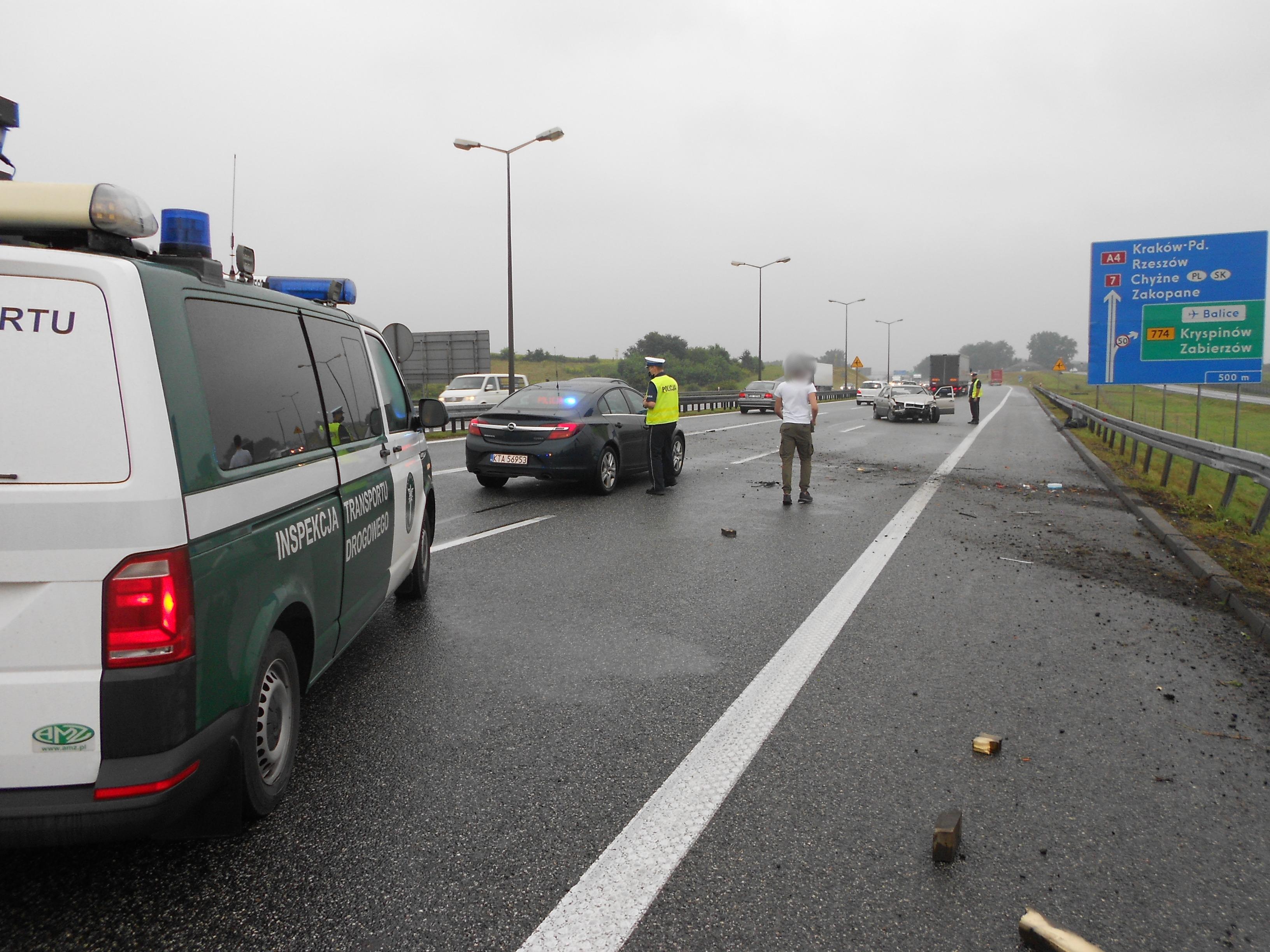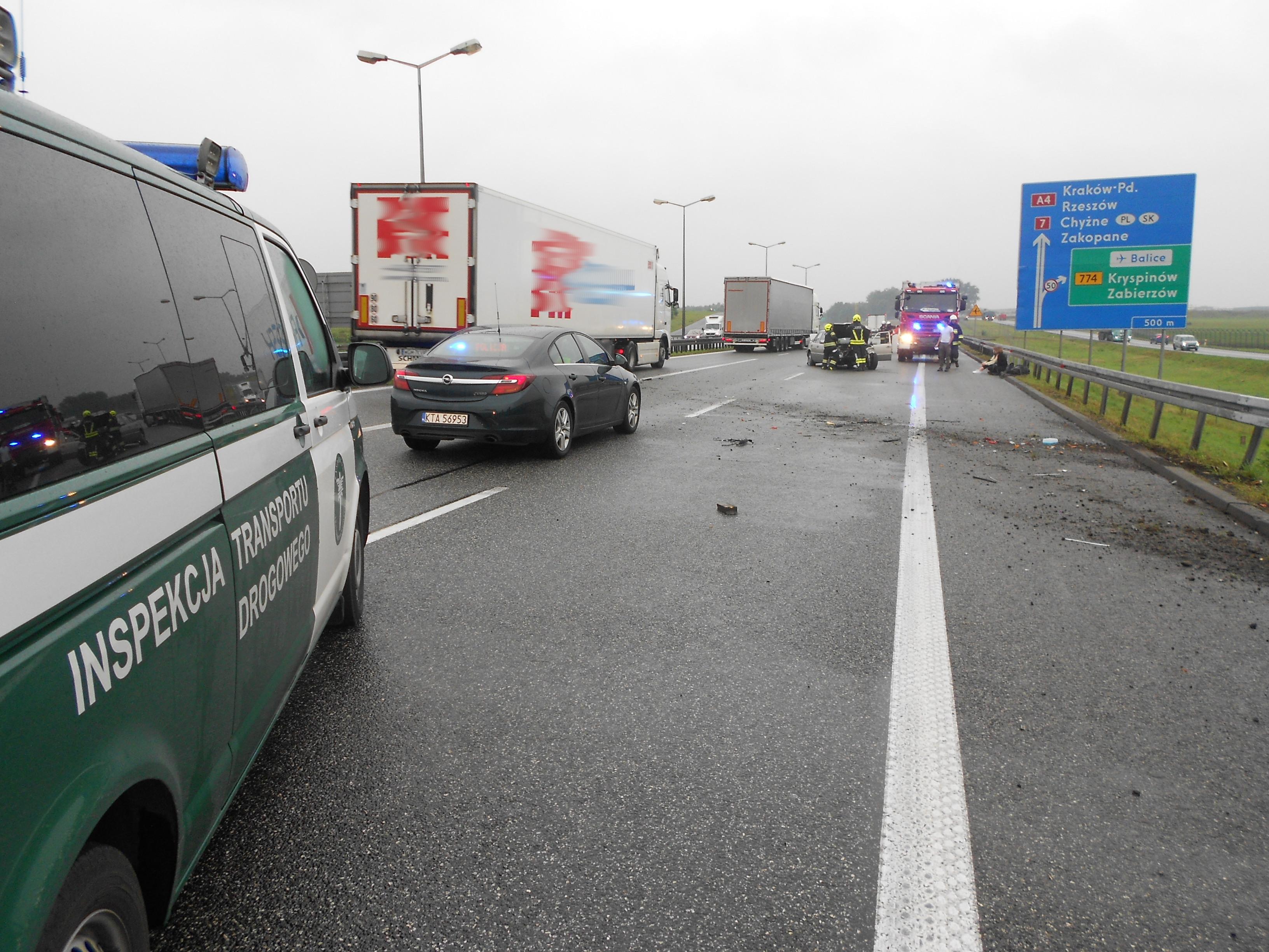 Do kolizji doszło na wysokości węzła Balice. Na śliskiej nawierzchni kierujący samochodem osobowym uderzył w bariery energochłonne. Inspektorzy z małopolskiego Biura Kontroli Opłaty Elektronicznej, którzy byli świadkami zdarzenia, udzielili pomocy poszkodowanym, zabezpieczyli miejsce kolizji oraz wezwali służby ratunkowe.