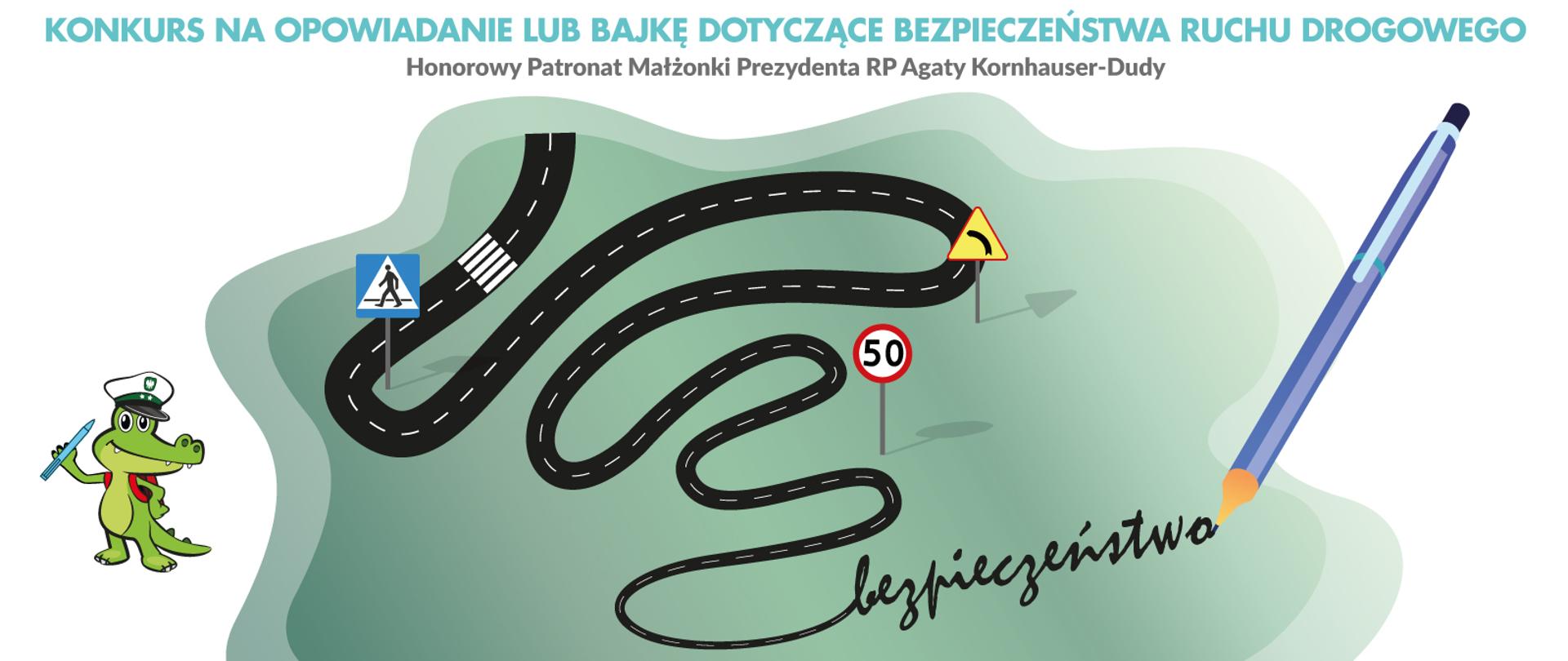 Znasz Krokodylka Tirka i jego szkołę bezpieczeństwa ruchu drogowego, nie są ci obce przepisy i zasady obowiązujące na drodze, dbasz o swoje i innych bezpieczeństwo? Weź udział w konkursie literackim na najciekawsze opowiadanie lub bajkę o bezpieczeństwie ruchu drogowego.