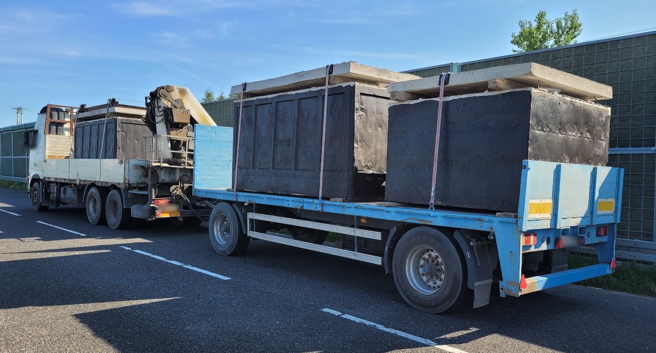 Dwie przeładowane ciężarówki wycofali tymczasowo z dalszej jazdy funkcjonariusze mazowieckiej Inspekcji Transportu Drogowego. Nienormatywne pojazdy z kontenerami i szambami betonowymi zatrzymano koło Radomia. Za stwierdzone nieprawidłowości przewoźnikom grożą kary pieniężne.