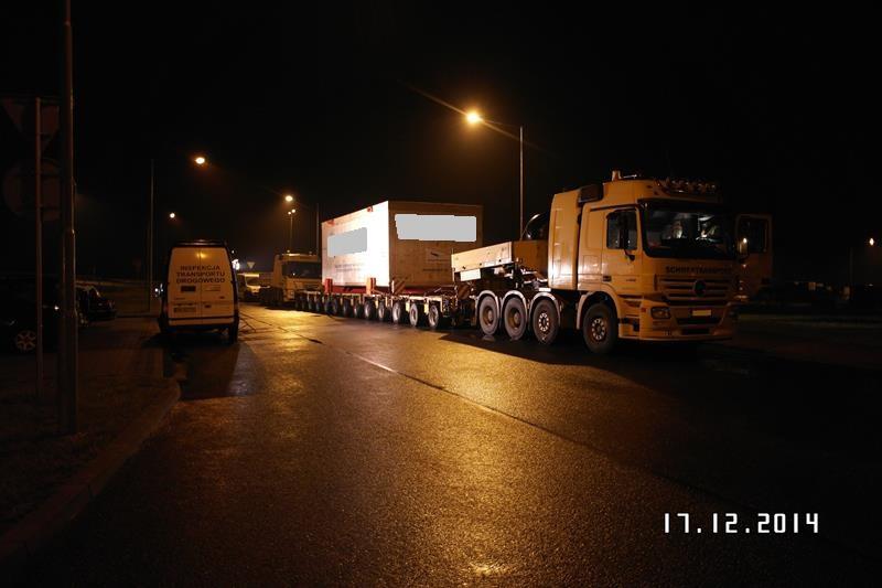 Zespół składał się z trzech pojazdów i był tak cieżki, że pierwszy z nich ciągnął naczepę a ostatni pchał cały zestaw. Po przeprowadzeniu kontroli na wyznaczonym do tego miejscu inspektorzy stwierdzili, że masa pojazdu wraz z ładunkiem wynosi blisko 200 ton! Kierowca nie posiadał wymaganego zezwolenia na przejazd pojazdem nienormatywnym, zatem zgodnie z przepisami dopuszczalna masa całkowita takiego zestawu mogłaby wynieść około 40 ton. Zestaw miał 38,8 m długości (przy dopuszczalnej 18,75 m) i 4,21 m szerokości (przy dopuszczalnej 2,55 m). Był też za wysoki - mierzył 4, 26 m wysokości.