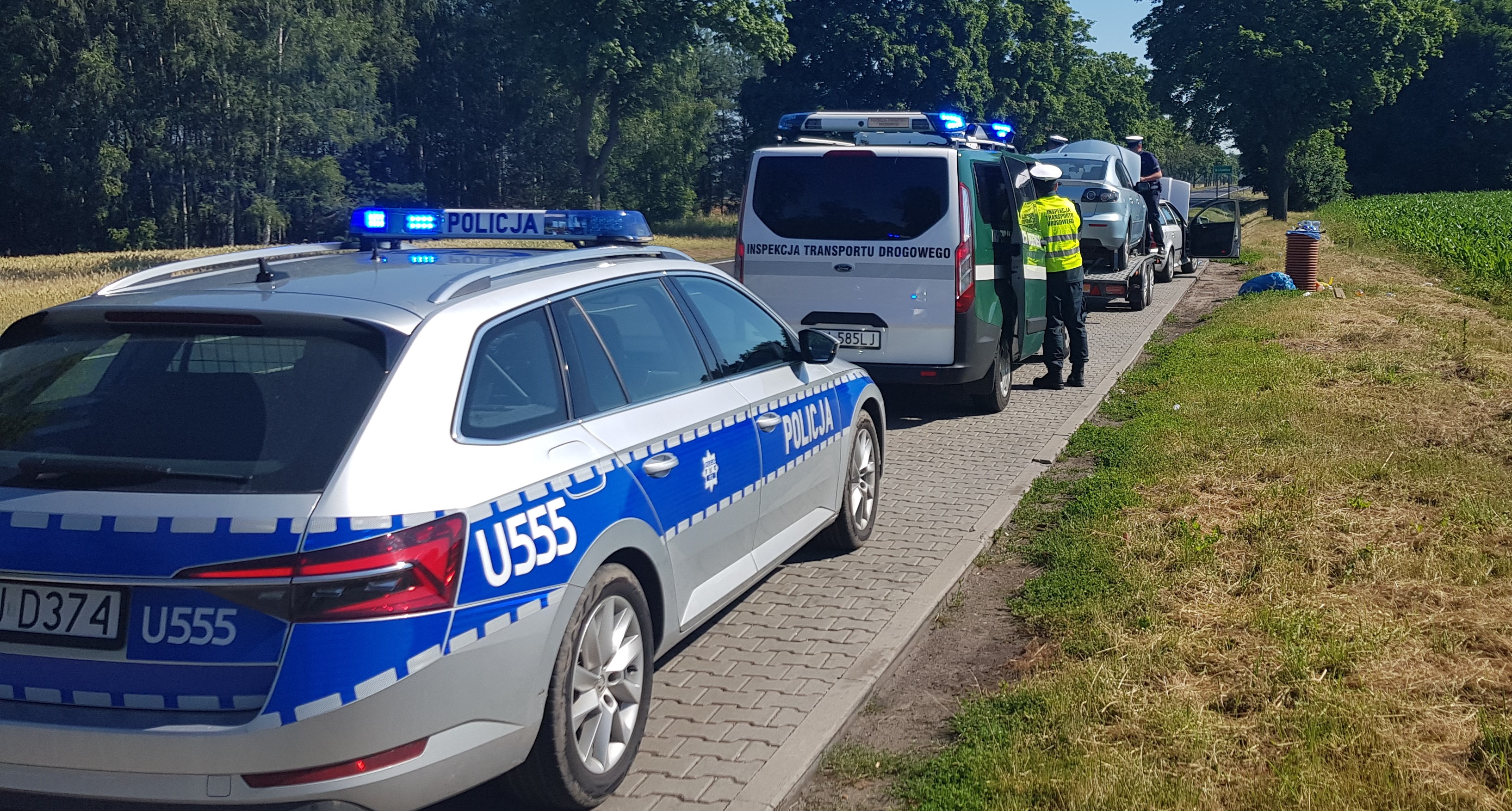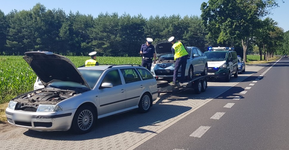 Interwencją Policji oraz skierowaniem zagranicznego zespołu pojazdów na wyznaczony parking strzeżony zakończyła się kontrola inspektorów z Głównego Inspektoratu Transportu Drogowego. Osobówka przewożąca na przyczepie-lawecie inny pojazd miała dwie różne tablice rejestracyjne, które pochodziły od zupełnie innych aut. Samochód nie miał także obowiązkowego ubezpieczenia OC i ważnego badania technicznego, a jego kierowca nie wnosił opłaty elektronicznej za przejazd płatnym odcinkiem drogi krajowej.