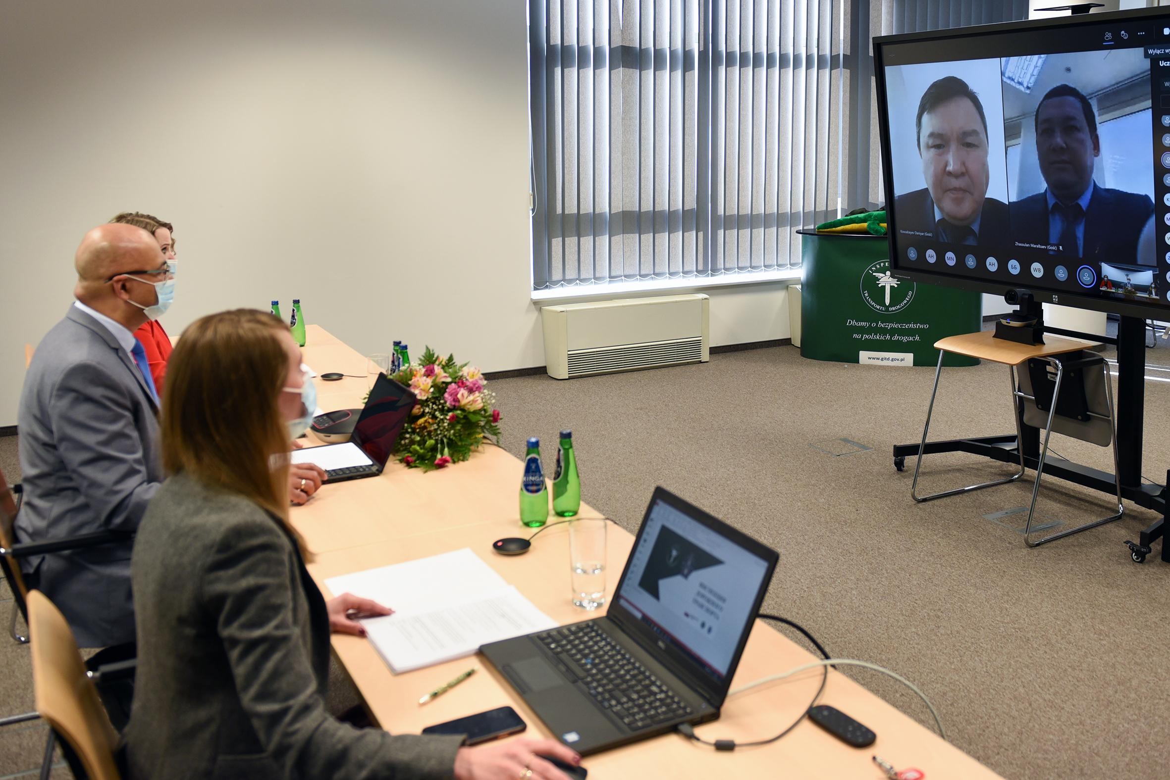 W zorganizowanej 31 marca wideokonferencji z kazachskimi ekspertami w dziedzinie transportu, po stronie polskiej udział wzięli Główny Inspektor Transportu Drogowego Alvin Gajadhur, p.o. zastępca Głównego Inspektora Transportu Drogowego Joanna Smolińska, zastępca Dyrektora Gabinetu Głównego Inspektora Anna Zięba, zastępca Dyrektora Biura Nadzoru Inspekcyjnego Weronika Biaduń. Stronę kazachską reprezentowali m.in. zastępca Przewodniczącego Komitetu Transportu Ministerstwa Przemysłu i Rozwoju Infrastrukturalnego Daniyara Kospabaev oraz przedstawiciele Ambasady Kazachstanu w RP.