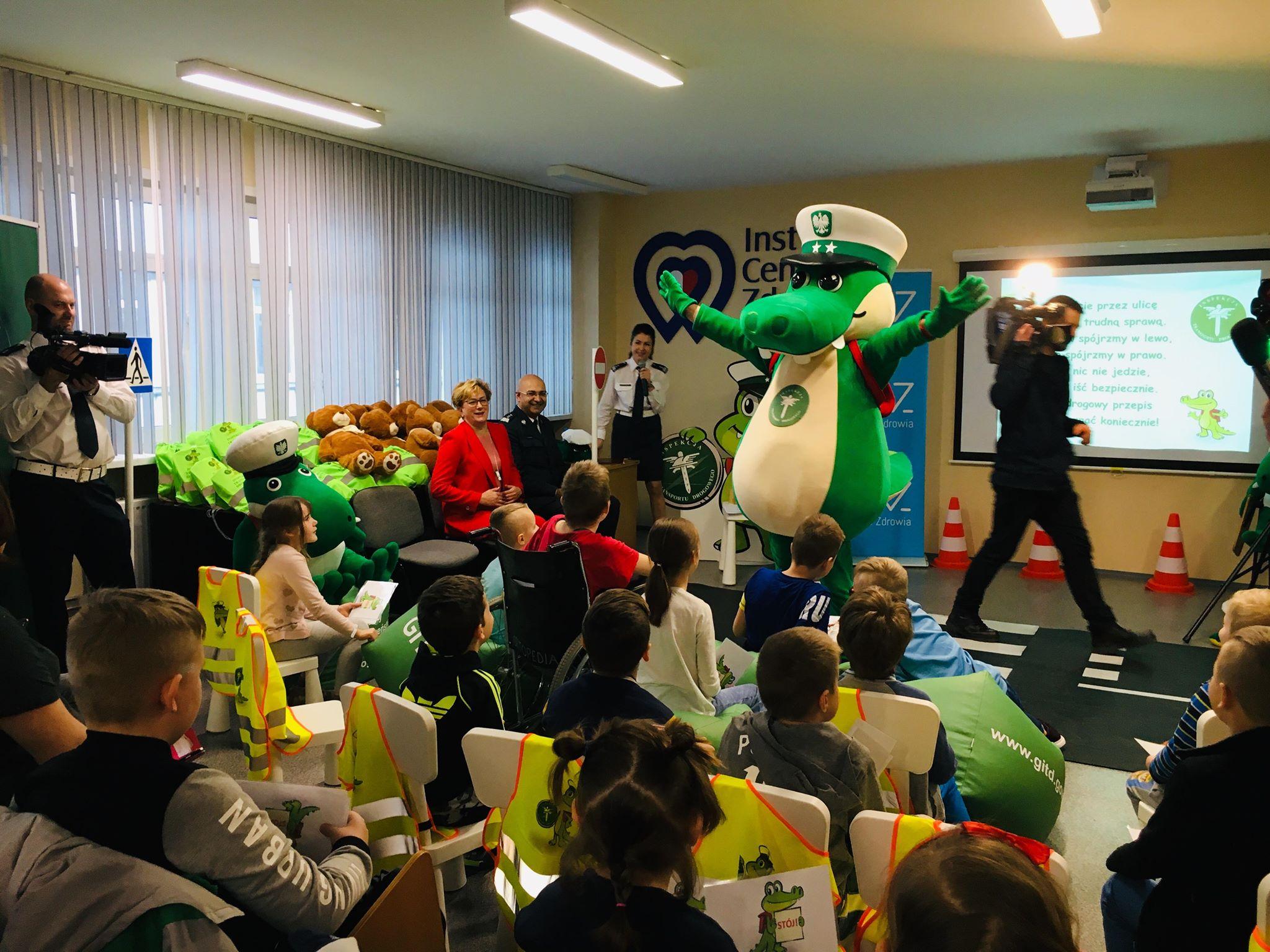 W lekcji bezpieczeństwa uczestniczył Krokodylek Tirek - maskotka ITD. Pacjenci łódzkiego Instytutu Centrum Zdrowia Matki Polki z radością przywitali Tirka. Na zakończenie spotkania na każdego uczestnika lekcji czekały upominki przygotowane przez resort zdrowia i GITD, w tym zestawy elementów odblaskowych. Walory edukacyjne lekcji oraz atrakcyjna forma jej realizacji została doceniona przez Macieja Banacha dyrektora Instytutu Centrum Zdrowia Matki Polki, który pozytywnie ocenił inicjatywę Inspekcji.