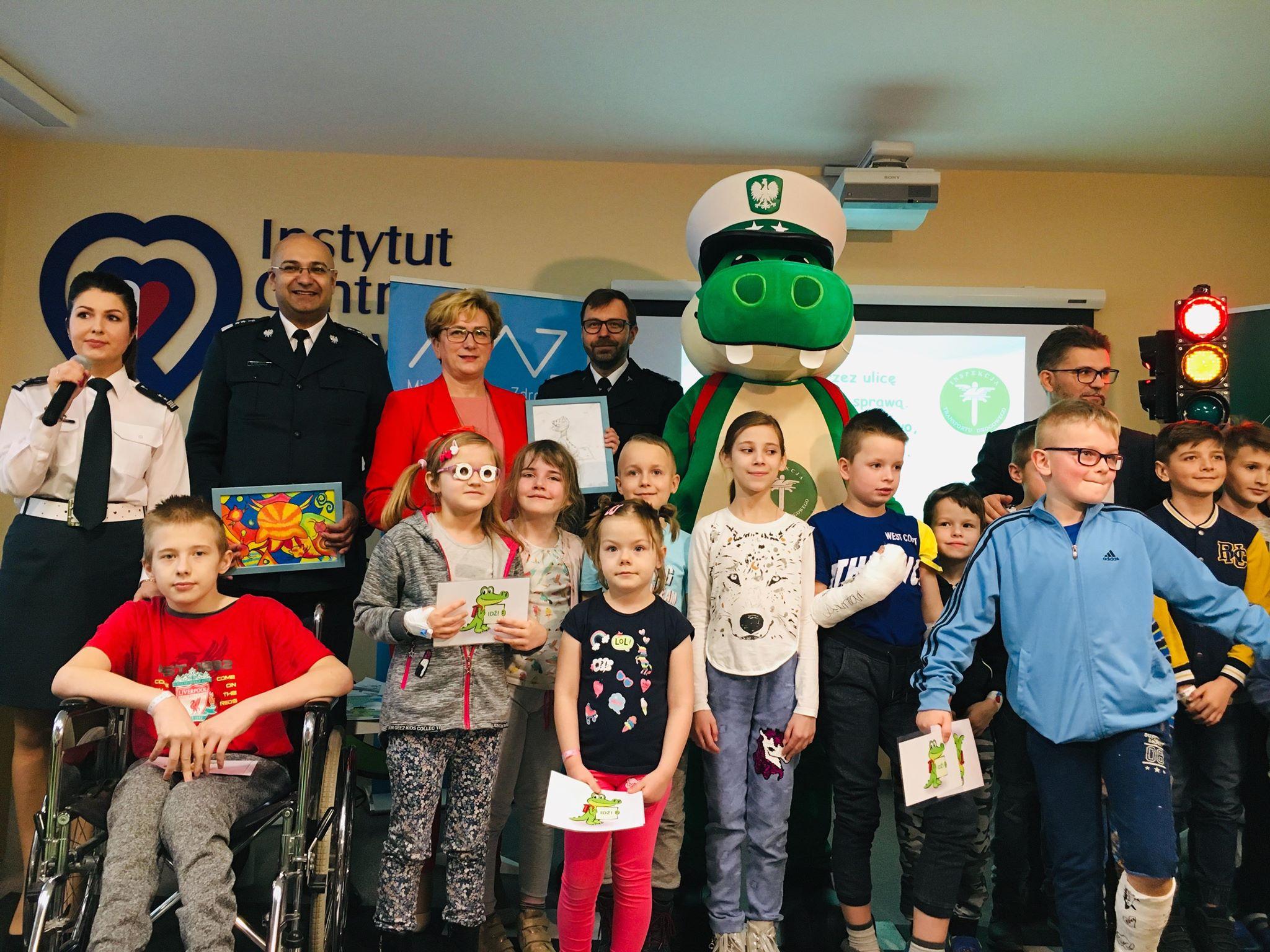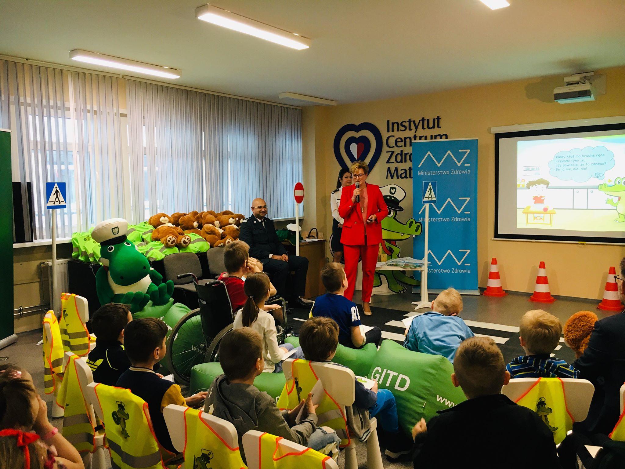 Wyjątkowi uczniowie i wyjątkowi nauczyciele - pierwsza w tym roku lekcja bezpieczeństwa dla małych pacjentów oddziałów szpitalnych odbyła się w łódzkim Instytucie Centrum Zdrowia Matki Polki. Wiceminister Zdrowia Józefa Szczurek-Żelazko i Główny Inspektor Transportu Drogowego Alvin Gajadhur opowiadali małym pacjentom o podstawowych zasadach bezpieczeństwa. Z dziećmi spotkał się także Krokodylek Tirek.
