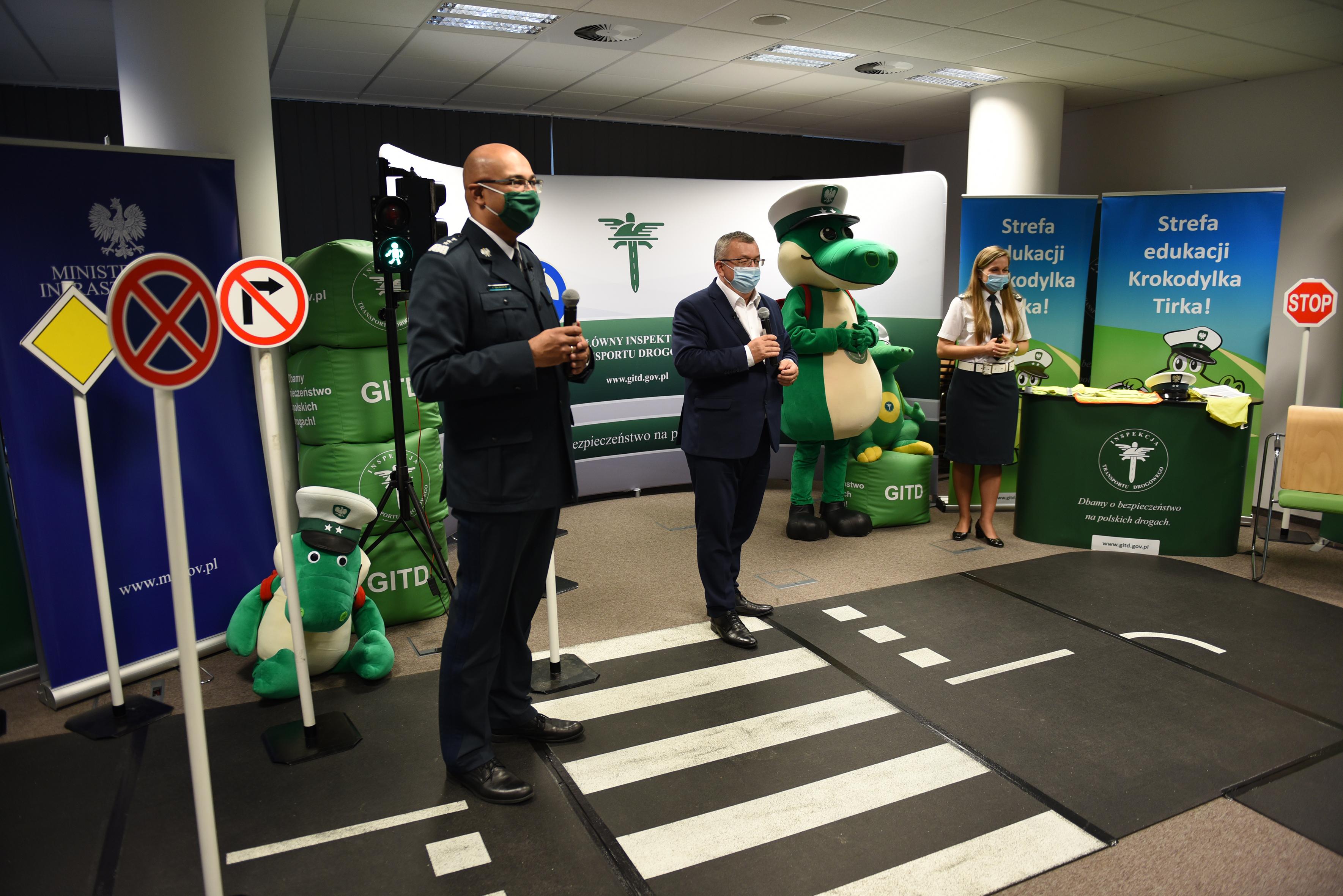 „Bezpieczna Szkoła Krokodylka Tirka” przeniosła się do sieci. Lekcje BRD online to nowy projekt edukacyjny Inspekcji Transportu Drogowego dostosowany do czasu pandemii i wymogów nauki zdalnej. Dziś o bezpieczeństwie ruchu drogowego online rozmawiali z najmłodszymi Minister Infrastruktury Andrzej Adamczyk i Główny Inspektor Transportu Drogowego Alvin Gajadhur.