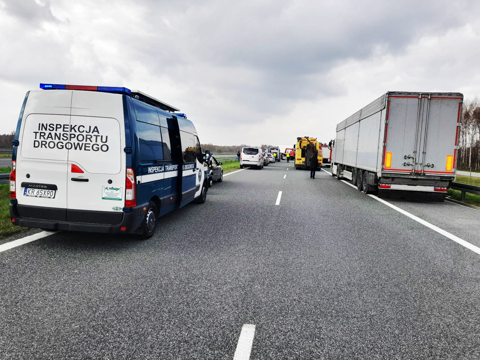 Tarnowscy inspektorzy małopolskiej Inspekcji Transportu Drogowego wsparli służby, prowadzące czynności na miejscu groźnego zdarzenia drogowego na autostradzie A4. Pobrane i zabezpieczone dane z tachografu cyfrowego i karty kierowcy zostały przekazane funkcjonariuszom Policji.