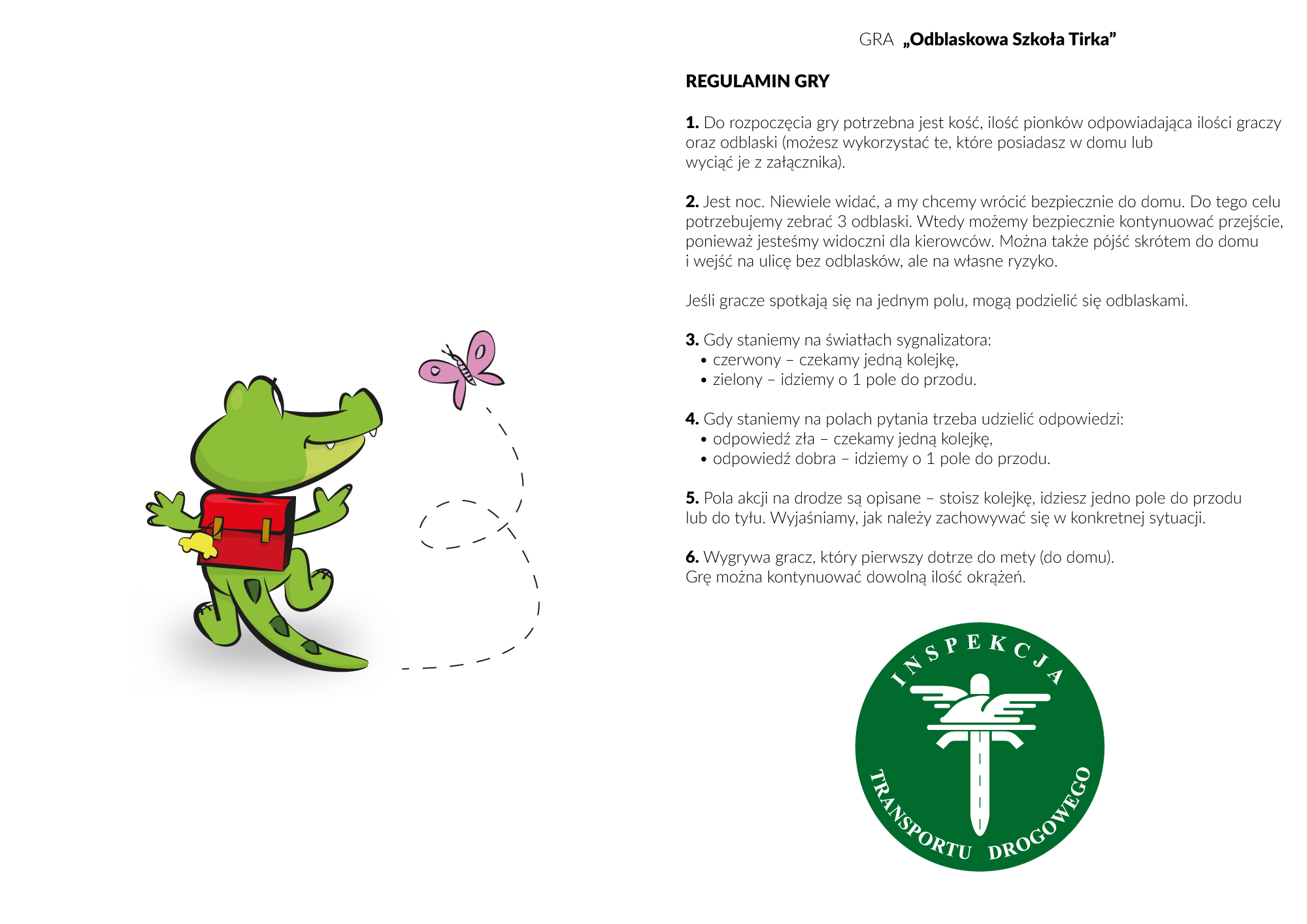 Zapraszamy Cię do szkoły krokodylka Tirka Inspekcji Transportu Drogowego! Znajdziesz tu sporo ciekawych pomocy do nauki i zabawy - krzyżówki, malowanki, rebusy, gry.