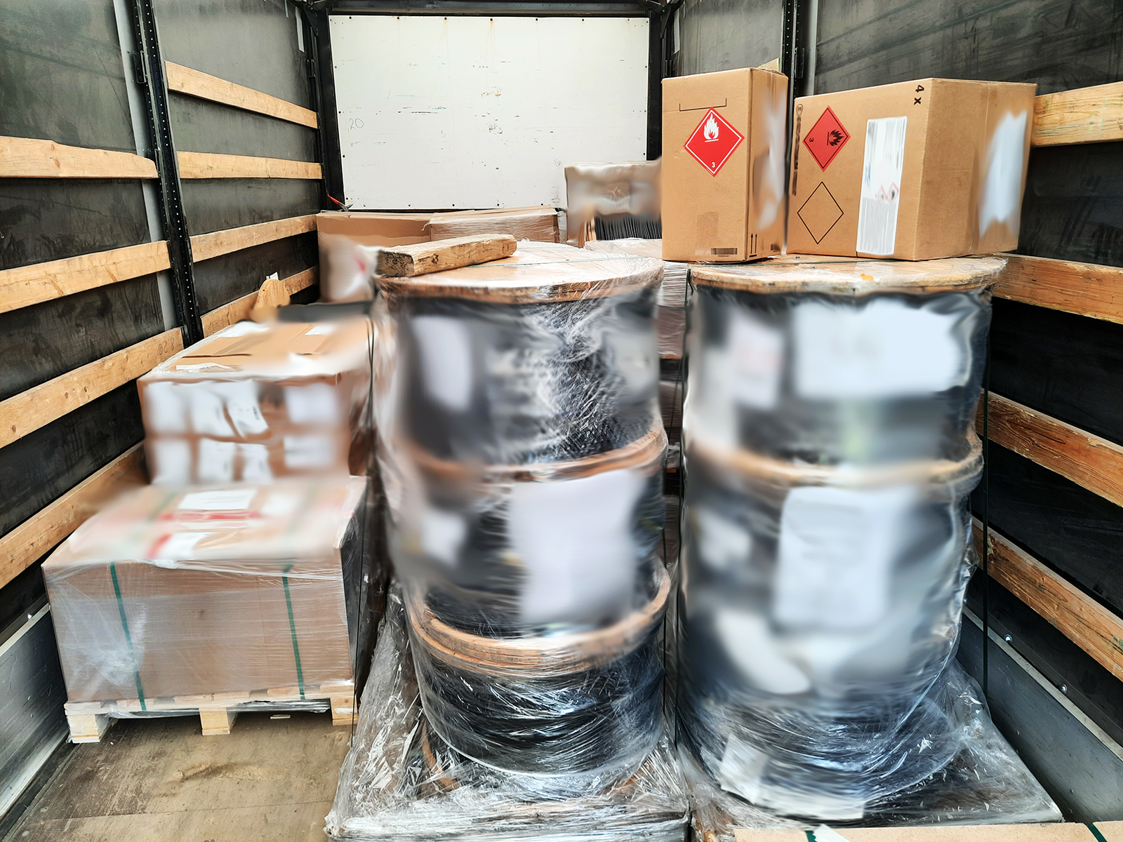 Zatrzymany do kontroli kierowca przewoził przesyłki kurierskie. Inspektorzy, sprawdzając transport, znaleźli niezabezpieczone niebezpieczne towary, których przewóz jest określony regulacjami ADR. 60 litrów pirydyny (UN 1282) i 25 litrów acetonu (UN 1098) nie można przewozić bez zabezpieczenia, ponieważ materiały te są ciekłe i łatwopalne, a ich temperatura zapłonu jest niższa niż 23 stopnie Celsjusza. Kierowca nie miał odpowiedniej gaśnicy. Dodatkowo sam pojazd pozostawiał wiele do życzenia. Inspektorzy stwierdzili na pierwszej osi mocno zużyte ogumienie oraz brak od 2 lat badania technicznego tachografu. Po analizie zapisów z karty kierowcy okazało się, że dane nie zostały pobrane przez przewoźnika w wymaganym terminie.
