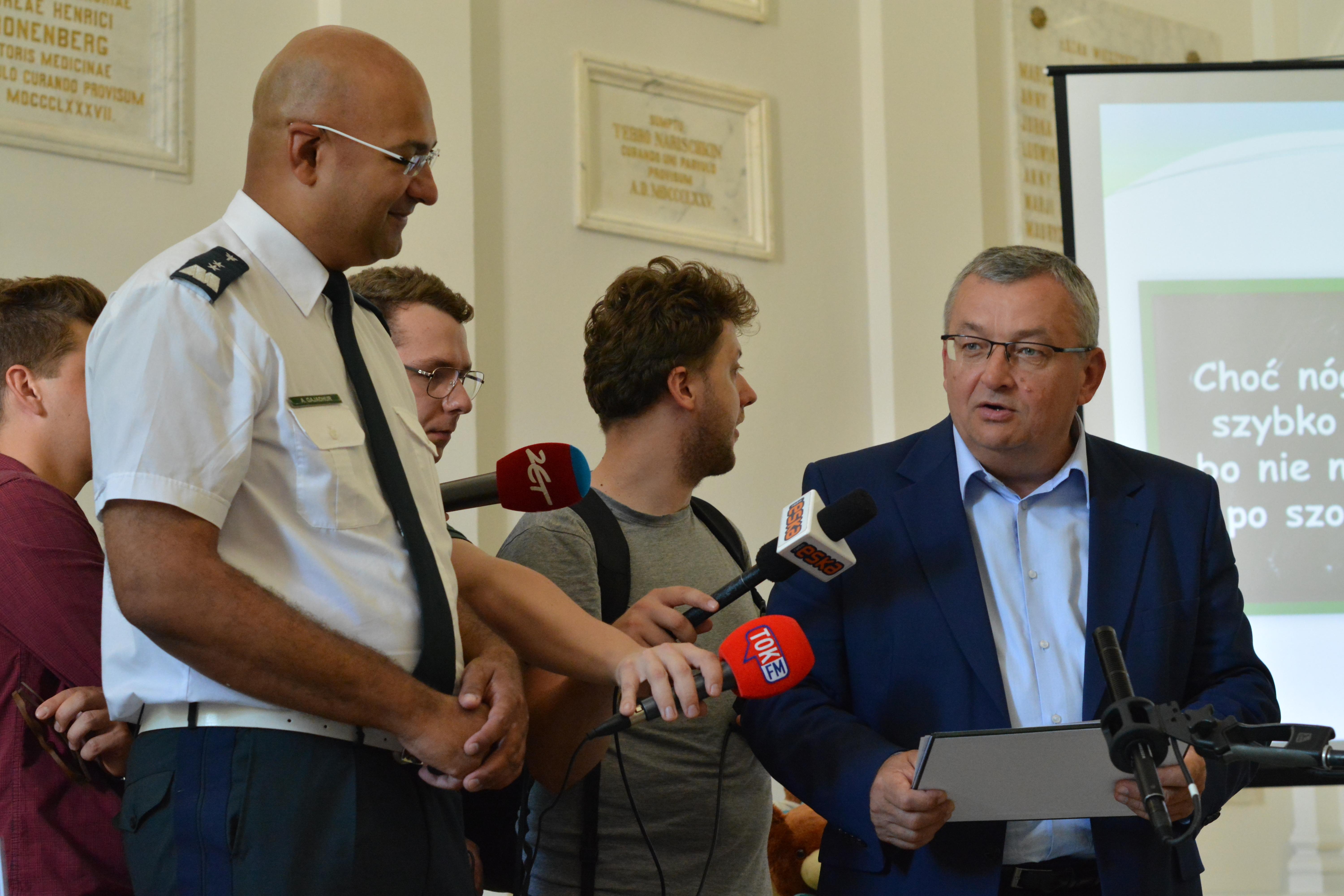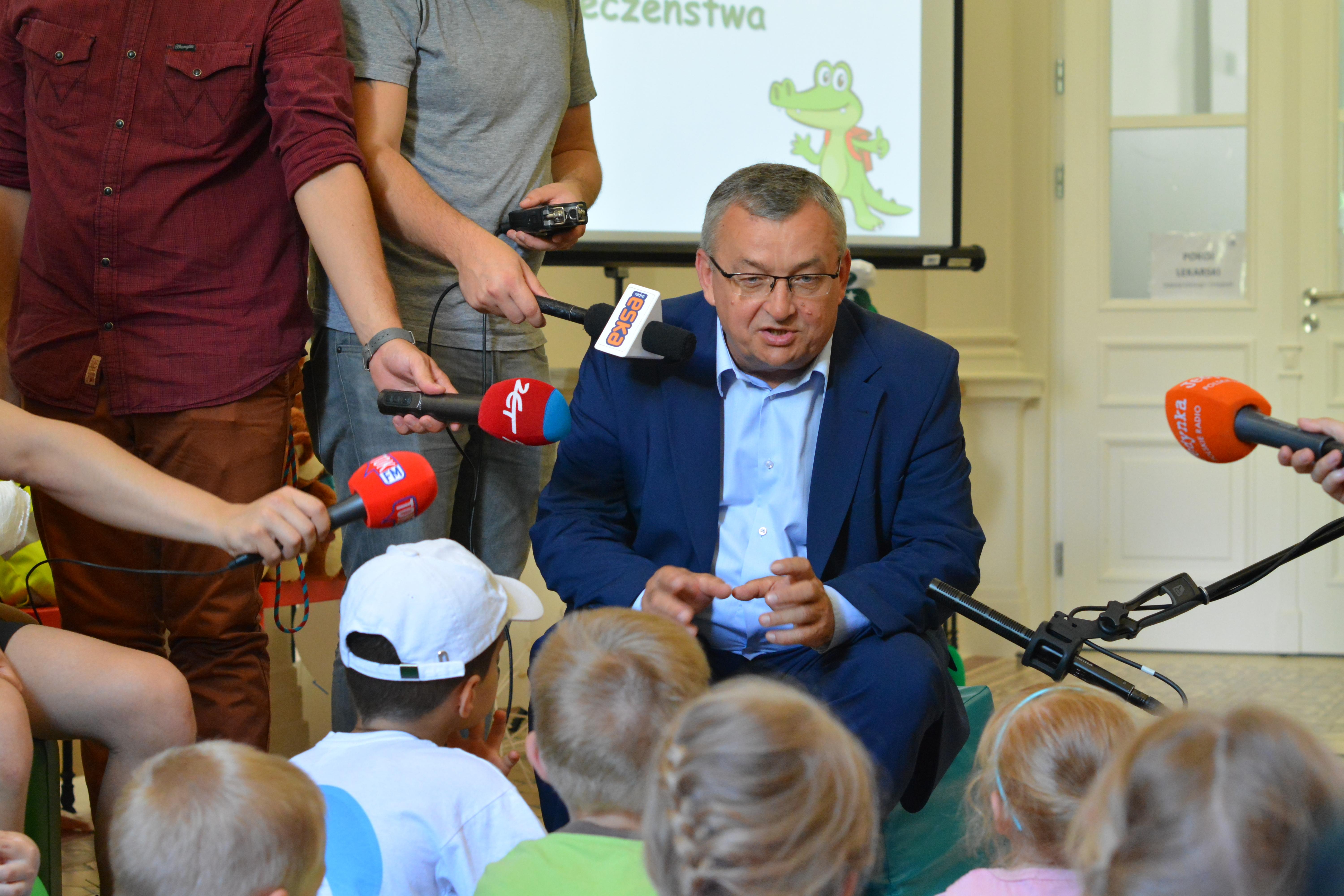 Wyjątkowa lekcja bezpieczeństwa odbyła się dziś w Warszawskim Szpitalu dla Dzieci przy ul. Kopernika. Krokodylek Tirek rozpoczął cykl spotkań edukacyjnych z małymi pacjentami, których będzie odwiedzał w szpitalach na terenie całego kraju. W zajęciach inaugurujących wzięli udział Minister Infrastruktury Andrzej Adamczyk, Minister Zdrowia Łukasz Szumowski, Sekretarz stanu w Ministerstwie Zdrowia Józefa Szczurek-Żelazko oraz Główny Inspektor Transportu Drogowego Alvin Gajadhur.