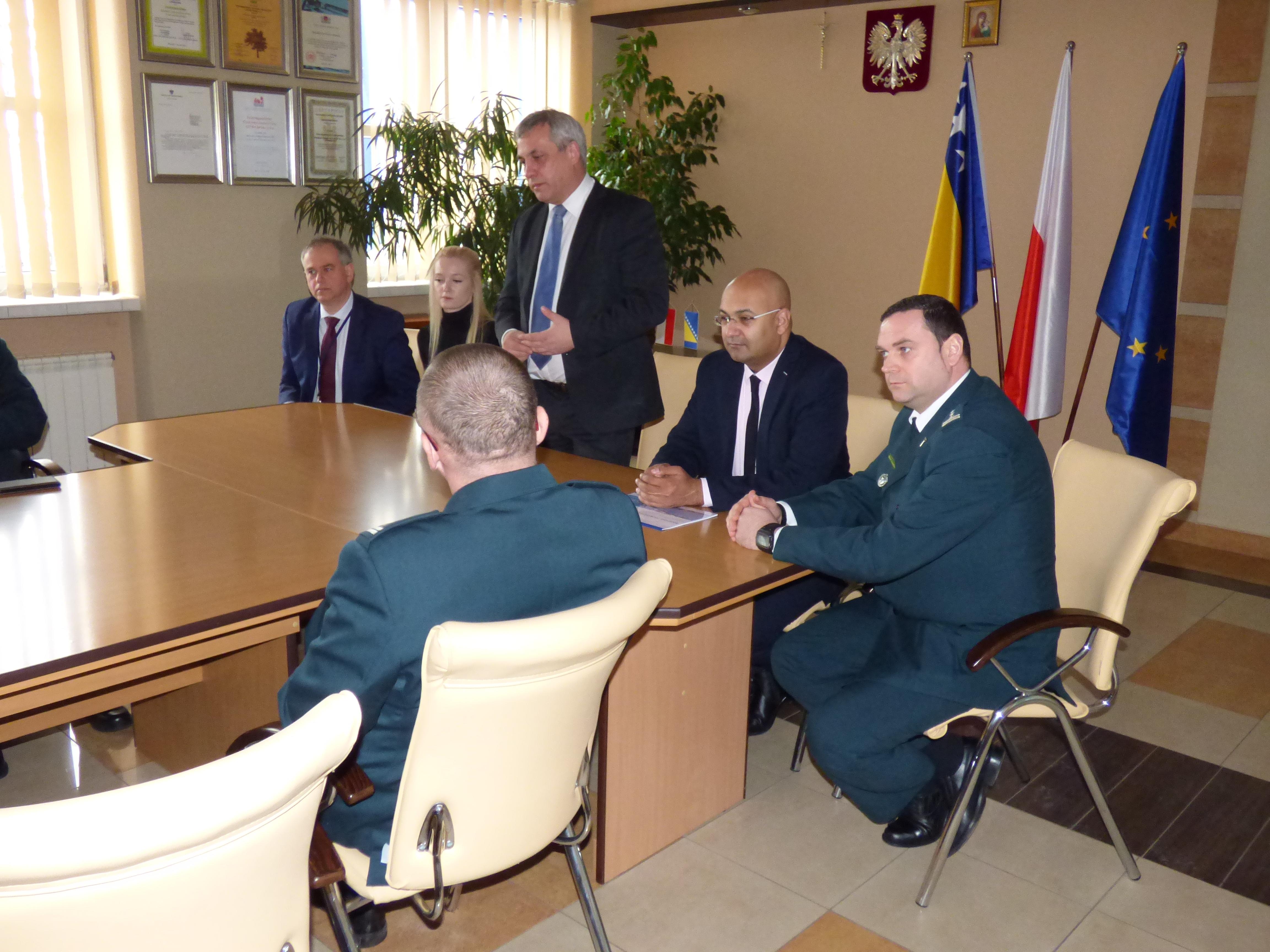 Alvin Gajadhur wraz z ministrem Jerzym Szmitem podziękowali inspektorom za skuteczne kontrole na terenie byłego przejścia granicznego w Budzisku w zakresie kontroli zezwoleń zagranicznych.