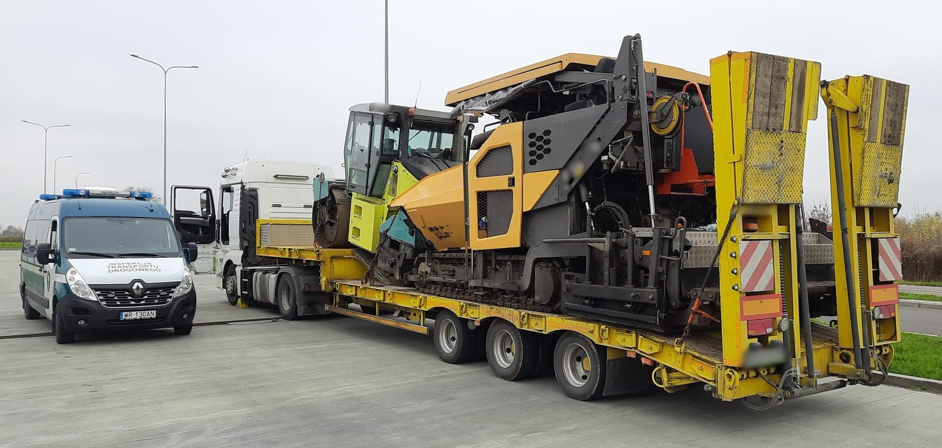 Ciężarówka przewożąca dwie maszyny na budowę drogi przyczyniała się do degradacji nawierzchni już istniejących dróg. Zestaw z rozściełaczem asfaltu i walcem ważył o kilka ton za dużo. Taka masa ładunku spowodowała przekroczenie dopuszczalnych nacisków grupy osi naczepy na drogę. W tym przypadku funkcjonariusze mazowieckiej Inspekcji Transportu Drogowego wstrzymali tymczasowo przewóz maszyn. Wobec przewoźnika zostanie wszczęte postępowanie administracyjne.