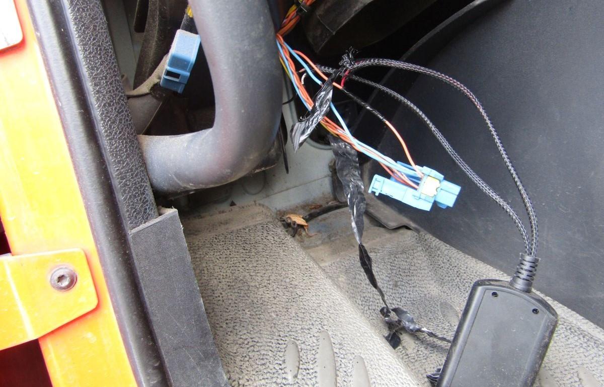 Ciężarówkę należącą do ukraińskiego przewoźnika zatrzymali inspektorzy ITD w poniedziałek (22 marca) na krajowej 73-ce w Chmielniku. W trakcie kontroli stanu technicznego ujawniono, że do instalacji elektrycznej ciągnika siodłowego został podłączony emulator AdBlue. Niedozwolone urządzenie oszukiwało komputer pokładowy pojazdu o sprawności układu oczyszczania spalin (SCR). Układ nie działał i nie oczyszczał spalin, choć na tablicy rozdzielczej nie było kontrolki informującej o jego usterce. Zastrzeżenia inspektorów wzbudził również stan techniczny naczepy. Opony na jej tylnej osi miały nadmiernie zużyty bieżnik - poniżej znacznika TWI i wymaganego 1,6 mm.
