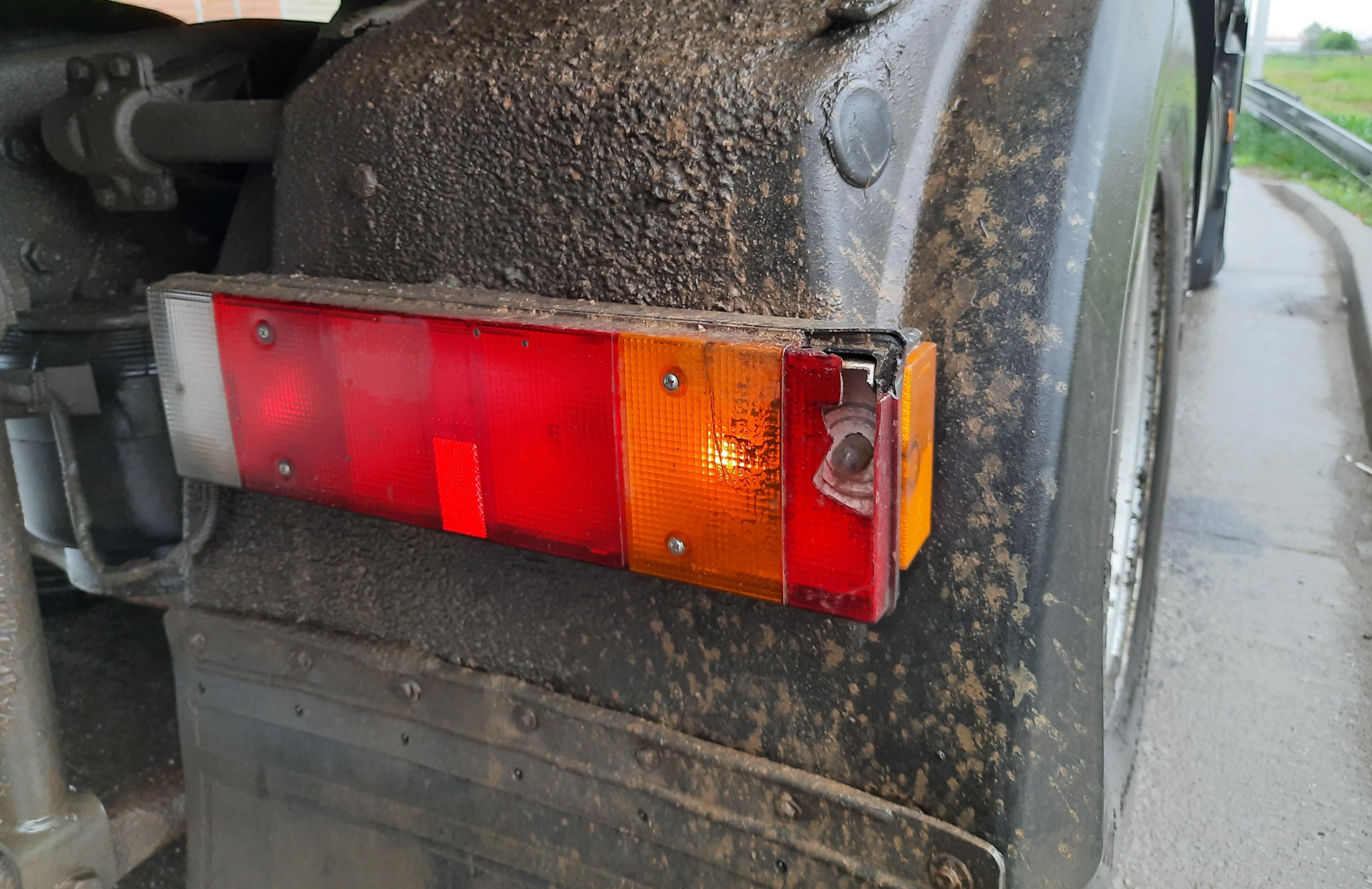 Kontrola stanu technicznego wykazała w ciągniku siodłowym i naczepie usterki zagrażające bezpieczeństwu ruchu drogowego. Zestaw miał m.in. nadmiernie zużyte i uszkodzone ogumienie. W ciągniku siodłowym uszkodzony był również klosz jednej z tylnych lamp.