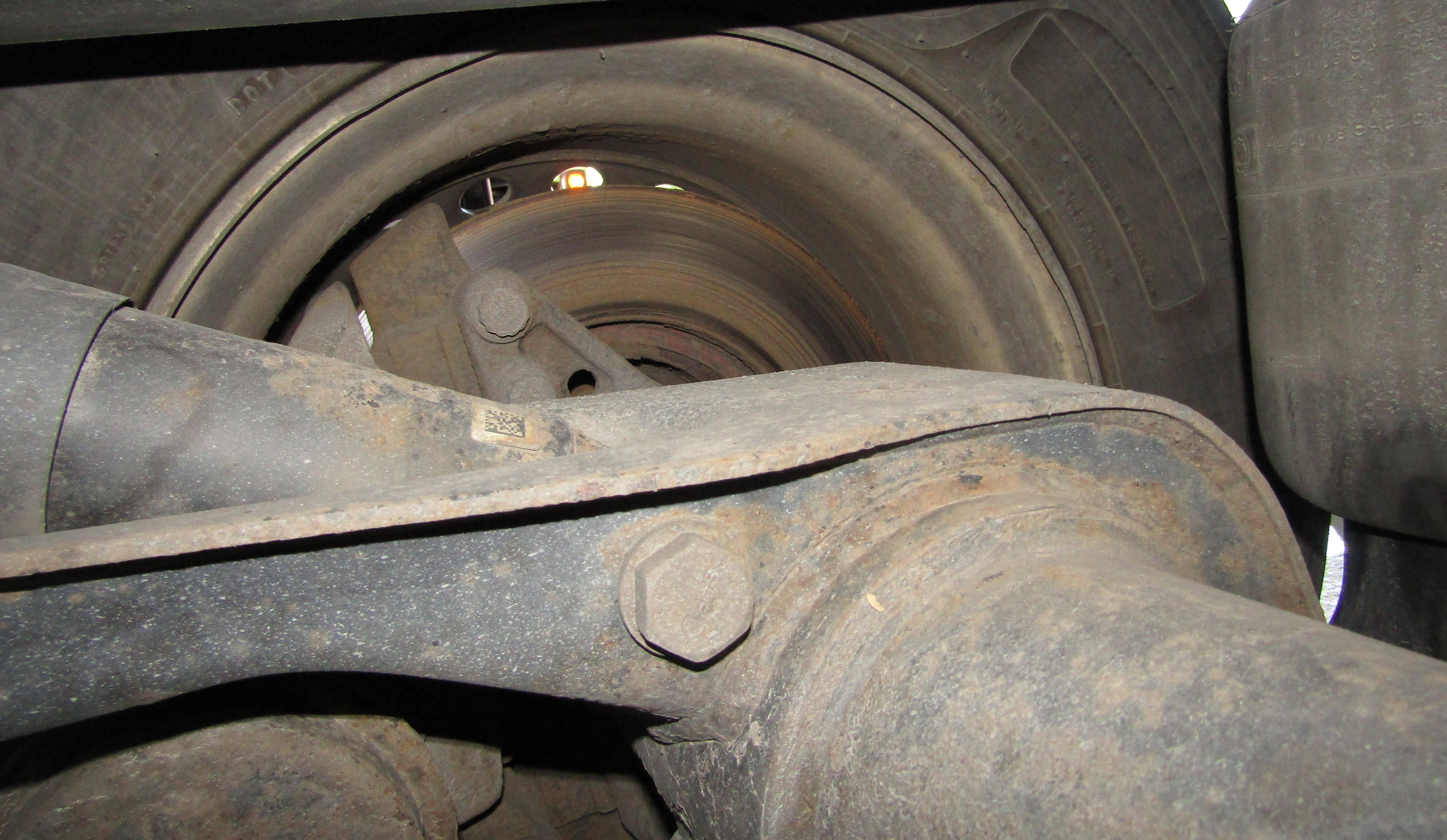 W trakcie kontroli stanu technicznego naczepy uwagę inspektorów zwrócił zagięty i zaciśnięty plastikową opaską przewód hamulcowy przy prawym kole na pierwszej osi. Zardzewiała tarcza hamulcowa przy kole tylko potwierdzała, że koło to w ogóle nie hamowało od dłuższego czasu. Przewód doprowadzający powietrze do siłownika hamulcowego zaciśnięto celowo prawdopodobnie z powodu awarii elementu układu hamulcowego przy kole. Kontrola czasu pracy kierowcy wykazała z kolei, że ostatni regularny odpoczynek tygodniowy spędził w pojeździe.