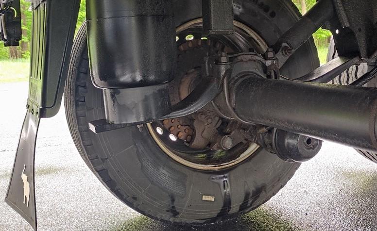 W trakcie kontroli stanu technicznego funkcjonariusze stwierdzili niesprawny układ hamulcowy w naczepie. Przy jednym z kół brakowało wewnętrznej części tarczy hamulcowej, a przy innym kole uszkodzony był zacisk hamulcowy.