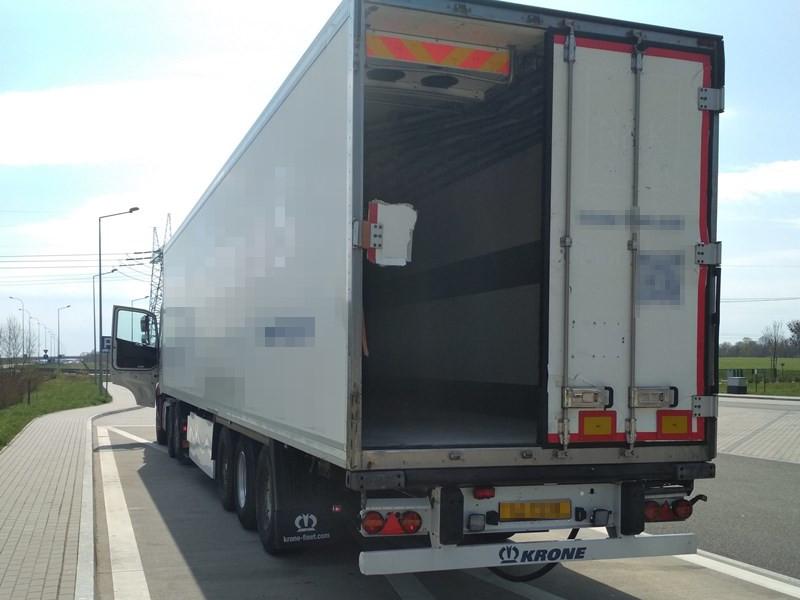 Lubuscy inspektorzy ITD w środę (28 kwietnia) zatrzymali do kontroli na ekspresowej "trójce" koło Gorzowa Wielkopolskiego polski ciągnik siodłowy z duńską naczepą przystosowaną do przewozu artykułów szybko psujących się. Naczepa miała uszkodzenia charakterystyczne dla pojazdu, który uczestniczył w kolizji drogowej. W naczepie brakowało lewych drzwi do ładowni, pozostał jedynie jeden zawias z częścią skrzydła drzwi. Prawy bok pojazdu miał uszkodzenia z wystającymi ostrymi krawędziami. Kierowca nie okazał podczas kontroli dokumentu potwierdzającego posiadanie aktualnego badania technicznego pojazdu potwierdzającego jego zdatność do ruchu drogowego. Wyjaśnił, że jedzie bez ładunku z naczepą z Goleniowa do Dębicy, aby ją naprawić. Kierowcy zakazano dalszej jazdy uszkodzonym pojazdem, a wobec przewoźnika i osoby zarządzającej transportem zostaną wszczęte postępowania w sprawie nałożenia kary pieniężnej.