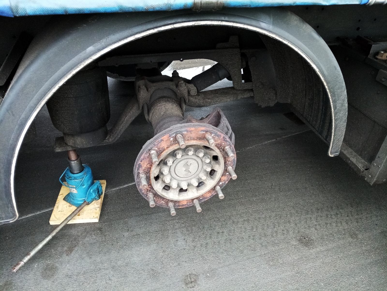 Na jednym z kół naczepy nie było tarczy hamulcowej. Ciężarówkę z niebezpieczną usterką zatrzymali inspektorzy kujawsko-pomorskiej Inspekcji Transportu Drogowego i zakazali jej dalszej jazdy do czasu naprawy.