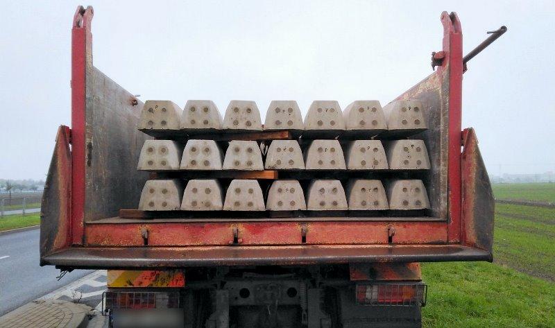 Niezabezpieczone, betonowe podkłady kolejowe były powodem zatrzymania do kontroli ciężarówki przez wielkopolską Inspekcję Transportu Drogowego. Ciężki ładunek mógł przesunąć się przy nagłym hamowaniu lub innym nagłym manewrze.