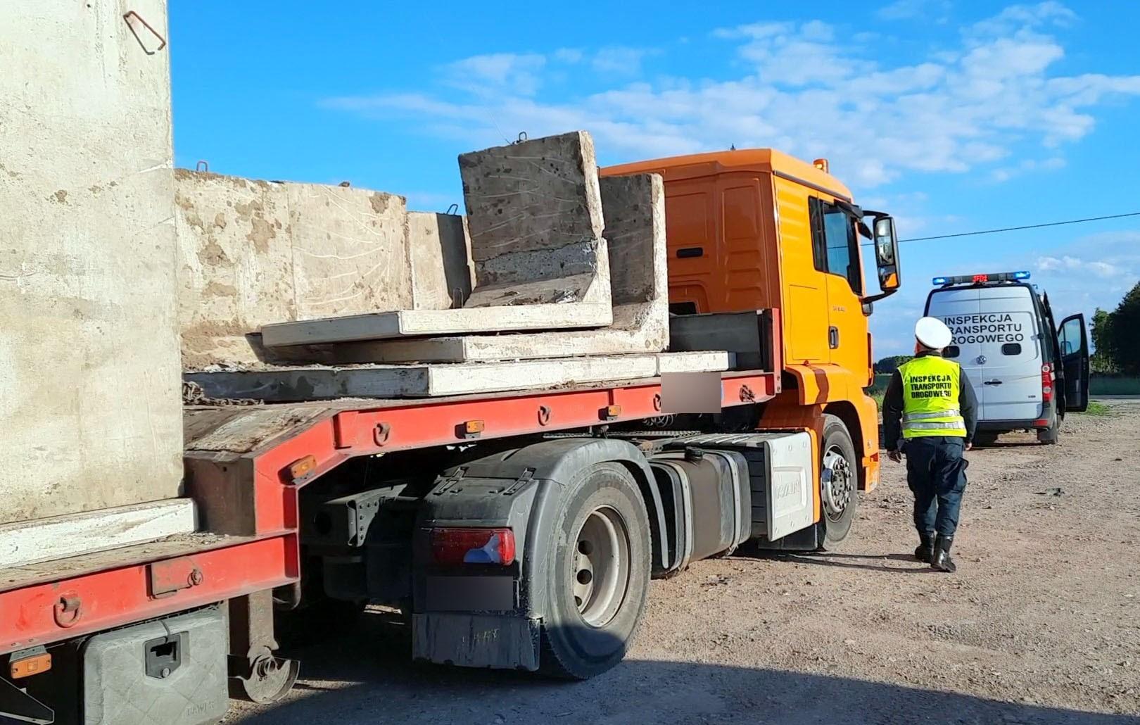 Bez żadnego zabezpieczania uniemożliwiającego przemieszczenie się ładunku przewoził elementy betonowe kierowca ciężarówki zatrzymanej do kontroli przez patrol wielkopolskiej Inspekcji Transportu Drogowego. Funkcjonariusze wstrzymali niebezpieczny przewóz i ukarali kierowcę mandatem.