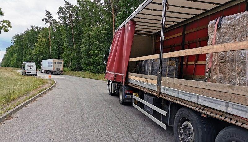 Transport dwóch kamieni ważących blisko 27 ton z portu w Szczecinie do Strzegomia zatrzymano w czwartek (16 lipca) na ul. Szosa Stargardzka w Szczecinie. Kierowca zapomniał bowiem o włączeniu obowiązkowych świateł.