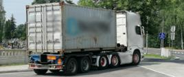 Ciągnik siodłowy z dwoma naczepami kontenerowymi był za ciężki. Nienormatywny zestaw o takiej konfiguracji nie był również w pełni sprawny technicznie. Oprócz tego kierowca ciężarówki ukrywał część swoich aktywności - jechał bez karty w tachografie i naruszył dopuszczalne limity czasu pracy. Szereg nieprawidłowości stwierdzili funkcjonariusze z podlaskiej Inspekcji Transportu Drogowego.
