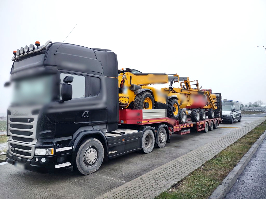 Z Plewisk koło Poznania w okolice Bydgoszczy, pojazdem członowym przewożono trzy maszyny - ładowarkę i dwa podnośniki. Transport na zachodniej obwodnicy Gniezna zatrzymali w poniedziałek (24 stycznia) gnieźnieńscy funkcjonariusze ITD. Rzeczywista masa całkowita ciągnika siodłowego i naczepy wyniosła 45,95 t, zamiast dopuszczalnych 40 ton. Jednak nie tylko waga była na wyrost. Przekroczone były także długość (o 0,8 m) i wysokość (o 0,23 m) zespołu pojazdów. Przewożony ładunek nie był oznakowany, a kierowca nie okazał zezwolenia na przejazd po drodze publicznej pojazdem nienormatywnym.