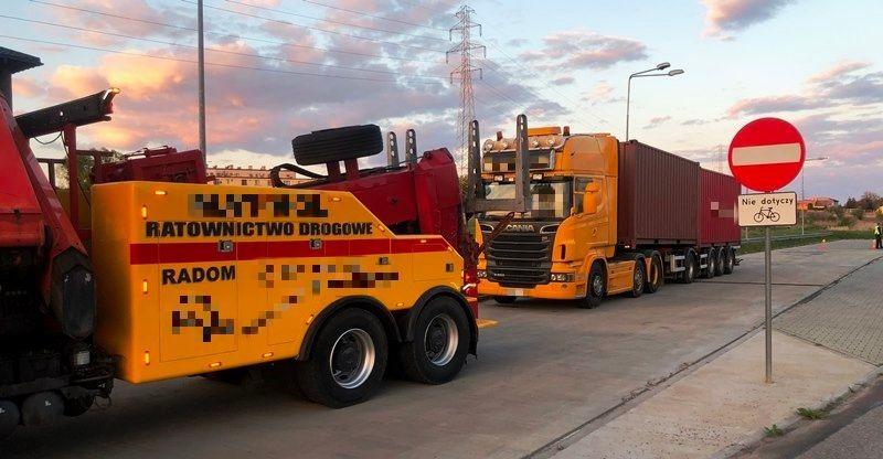 W czwartek (7 maja) na ul. Zwolińskiego stanowiącej miejski odcinek krajowej "dwunastki" w Radomiu inspektorzy ITD zatrzymali do kontroli zespół pojazdów przewożący dwa kontenery morskie z ładunkiem. 7-osiowy zestaw ciężarowy, czyli tzw. "stonoga" jechał z Nowej Sarzyny w powiecie leżajskim do Gdyni.