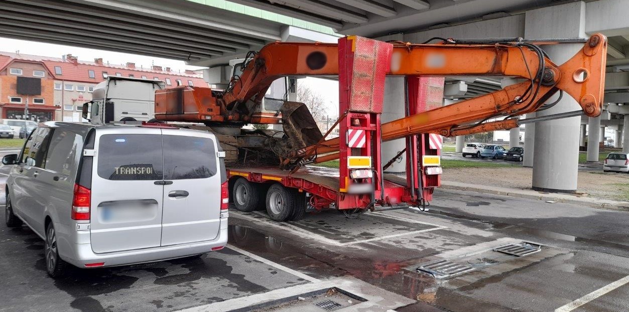 Z kolei w poniedziałek (27 marca), na drodze krajowej nr 77 w Stalowej Woli funkcjonariusze podkarpackiej Inspekcji Transportu Drogowego zatrzymali ciężarówkę przewożącą koparkę gąsienicową. Powodem podjęcia interwencji było podejrzenie przekroczenia dozwolonej masy oraz wymiarów zestawu. Oprócz tego ładunek wystający z tyłu i po bokach naczepy, nie był prawidłowo oznakowany oraz zabezpieczony przed możliwością zmiany położenia w trakcie jazdy. O ile rzeczywista masa całkowita zestawu była przekroczona nieznacznie, to był on zdecydowanie za długi. Długość zespołu pojazdów z ładunkiem wynosiła bowiem 19,4 m zamiast przepisowych 16,5 m. Niezgodna z przepisami była też szerokość ciężarówki. W tym przypadku kierowca nie okazał żadnego zezwolenia na przejazd gabarytem po drogach publicznych. Nie miał też wymaganego dokumentu przewozowego. Kontrola tachografu wykazała z kolei, że nie został on poddany badaniu okresowemu (legalizacji) w terminie.