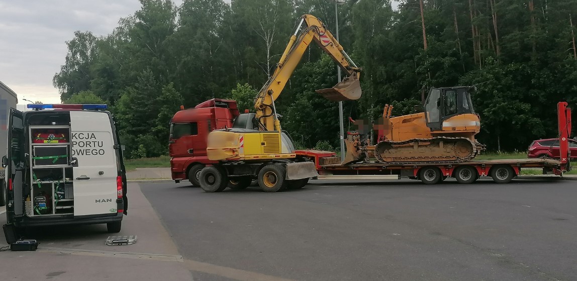 Ciężarówka przewożąca spychacz gąsienicowy była za szeroka i za długa. Przedsiębiorca nie miał zezwolenia uprawniającego do przejazdu ponadgabarytowego zestawu. Nienormatywny zespół pojazdów poruszał się po drogach także bez wymaganego pilotażu. Nieprawidłowości stwierdzili inspektorzy podlaskiej Inspekcji Transportu Drogowego.
