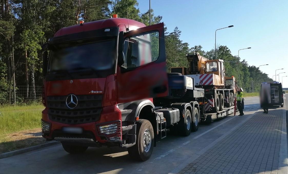 Za ciężki zestaw przewożący dźwig samojezdnym skontrolował patrol podlaskiej Inspekcji Transportu Drogowego. Kierowca miał zezwolenie na przejazd pojazdu nienormatywnego o masie całkowitej do 60 ton. Tymczasem ciężarówka ważyła 72,5 tony i miała znacznie przekroczone naciski podwójnej osi napędowej na drogę. Zestaw skierowano na parking strzeżony.