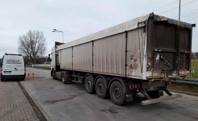 Funkcjonariusze postanowili również skontrolować rzeczywistą wagę zespołu pojazdów i naciski jego osi na drogę. Ciężarówka z ładunkiem ważyła 45 ton zamiast dopuszczalnych 40 ton. Nacisk potrójnej osi nienapędowej naczepy był przekroczony o 1,9 tony. Oprócz tego kierowca nie okazał do kontroli wymaganego dokumentu przewozowego.