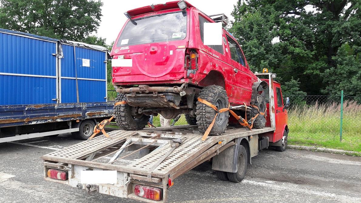 Niesprawna autolaweta przewoziła zbyt ciężki samochód terenowy