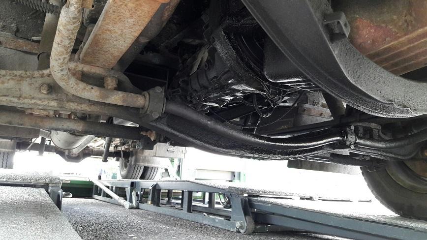 W czwartek, 13 lipca 2017 r. inspektorzy z WITD we Wrocławiu prowadzili kontrole z wykorzystaniem Mobilnej Linii Diagnostycznej. Celem ich działań było sprawdzenie stanu technicznego pojazdów, ochrona zasad uczciwej konkurencji oraz poprawa bezpieczeństwa w transporcie drogowym pojazdów poruszających się po drogach powiatu lubańskiego. Do kontroli zatrzymano autolawetę przewożącą samochód terenowy. W trakcie sprawdzenia stanu technicznego pojazdu stwierdzono rażące usterki, w tym m.in.: wycieki płynów eksploatacyjnych, niesprawny układ hamulcowy zasadniczy i pomocniczy, uszkodzone zawieszenie oraz oświetlenie, a także skorodowaną ramę pojazdu. Po kilku minutach od rozpoczęcia kontroli pod autem utworzyła się plama oleju o średnicy ok. 10 cm.