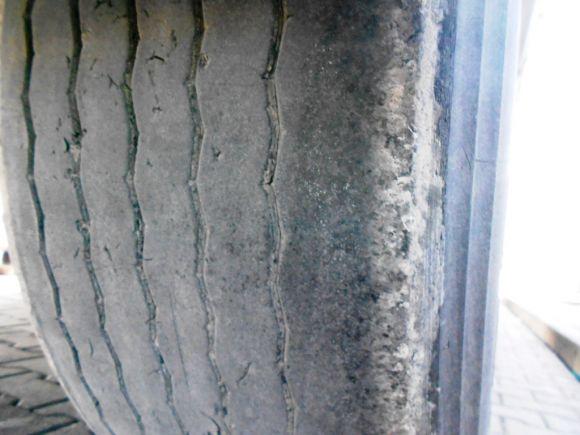 Uszkodzenie zewnętrznej ściany jednej z opon w ciągniku siodłowym groziło jej wystrzałem. Ponadto w pojeździe był obluzowany i nieszczelny układ wydechowy.