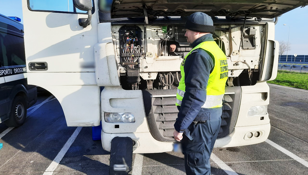 W poniedziałek (21 listopada), na ekspresowej „ósemce” w okolicy Wyszkowa, inspektorzy z Wojewódzkiego Inspektoratu Transportu Drogowego w Radomiu zatrzymali do kontroli ciągnik siodłowy z naczepą, w której były przewożone puste butelki po piwie. Inspektorzy skierowali ciężarówkę na Mobilną Jednostkę Diagnostyczną. To specjalistyczny sprzęt wykorzystywany do szczegółowej weryfikacji stanu technicznego pojazdów. W trakcie kontroli okazało się, że w ciągniku siodłowym niesprawny jest układ oczyszczania gazów spalinowych i redukcji tlenków azotu szkodliwych dla środowiska (układ SCR). Prawidłową pracę układu oczyszczania spalin symulował jednak emulator AdBlue. Wpięty był do instalacji elektrycznej pojazdu. Komunikat o awarii układu SCR wyświetlił się na desce rozdzielczej dopiero wtedy, gdy odłączono emulator. To jeszcze nie wszystko. W ciągniku siodłowym inspektorzy stwierdzili m.in. nieszczelność układu wydechowego, niesprawne światła przeciwmgłowe i uszkodzone lusterko. Na dodatek kierowca nie okazał do kontroli jednego z wymaganych dokumentów, czyli karty kwalifikacji kierowcy. Okazało się, że w ogóle nie wyrobił tego dokumentu.