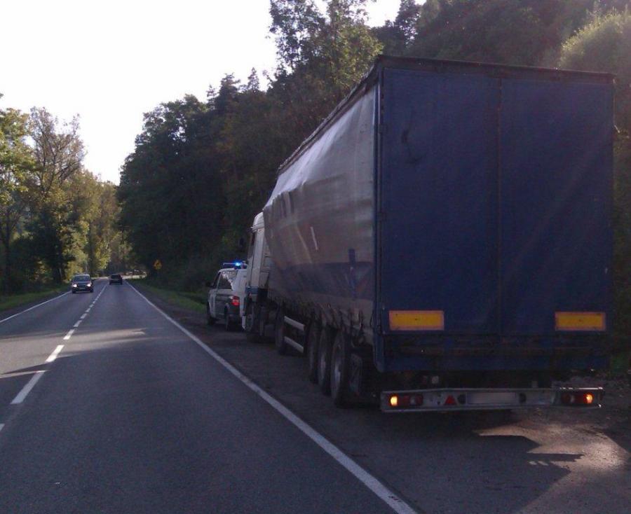 Na początku października inspektorzy Małopolskiego Wojewódzkiego Inspektoratu Transportu Drogowego - Oddział Terenowy Chrzanów wykonując zadania kontrolne na drodze krajowej nr 79 w miejscowości Zabierzów zatrzymali do kontroli ciągnik siodłowy z naczepą, którego kierowca poruszał się stwarzając bezpośrednie zagrożenie dla innych uczestników ruchu drogowego.