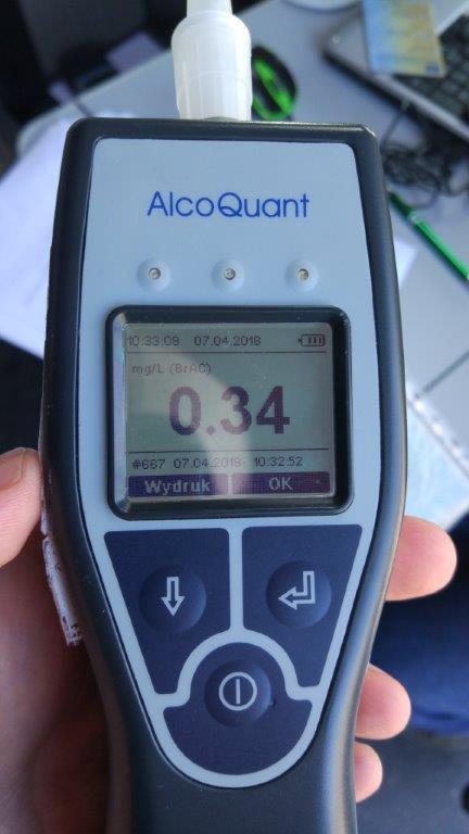 W sobotę, 7 kwietnia o godz. 10:30 na drodze krajowej nr 1 w Częstochowie inspektorzy z Wojewódzkiego Inspektoratu Transportu Drogowego w Katowicach zatrzymali do kontroli czeski ciągnik siodłowy z naczepą. Pojazdem tym kierował 50-letni Czech, który wykonywał międzynarodowy transport drogowy. Już od początku kontroli inspektorzy nabrali podejrzeń, że może być nietrzeźwy. Wyczuli bowiem od niego woń alkoholu. Przeprowadzone badanie alkotestem potwierdziło ich przypuszczenia - wskazało 0,34 mg/l (0,71 promila) alkoholu w wydychanym powietrzu przez kierującego.