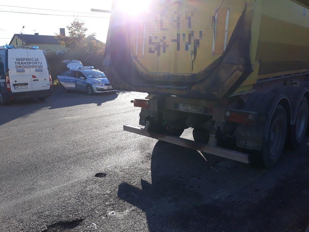 Kontrola ciągnika z naczepą wypełnioną masą bitumiczną odbyła się na drodze krajowej nr 79 w Sycynie (powiat zwoleński). Ciężarówka polskiego przewoźnika przewoziła ładunek z Ciepielowa do Żyrzyna.