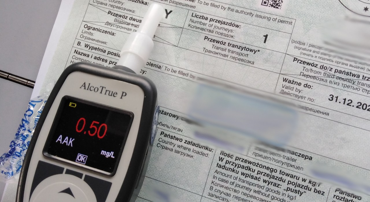 W czwartek (7 kwietnia), na krajowej „siódemce” w Spytkowicach w pobliżu Nowego Targu, patrol ITD zatrzymał do rutynowej kontroli drogowej zestaw należący do białoruskiej firmy transportowej. Za kierownicą ciężarówki siedział obywatel Białorusi, który przewoził 19 ton ładunku ze Słowacji do Rosji. W trakcie pobierania dokumentów, inspektor poczuł woń alkoholu. Kierowca twierdził, że jest trzeźwy. Badanie alkomatem wykazało 0,50 mg/l (ponad 1 promil) alkoholu w powietrzu wydychanym przez mężczyznę. Nietrzeźwego kierującego przekazano funkcjonariuszom Policji. Kierowanie pojazdem w stanie nietrzeźwości to przestępstwo zagrożone karą pozbawienia wolności do lat 2.